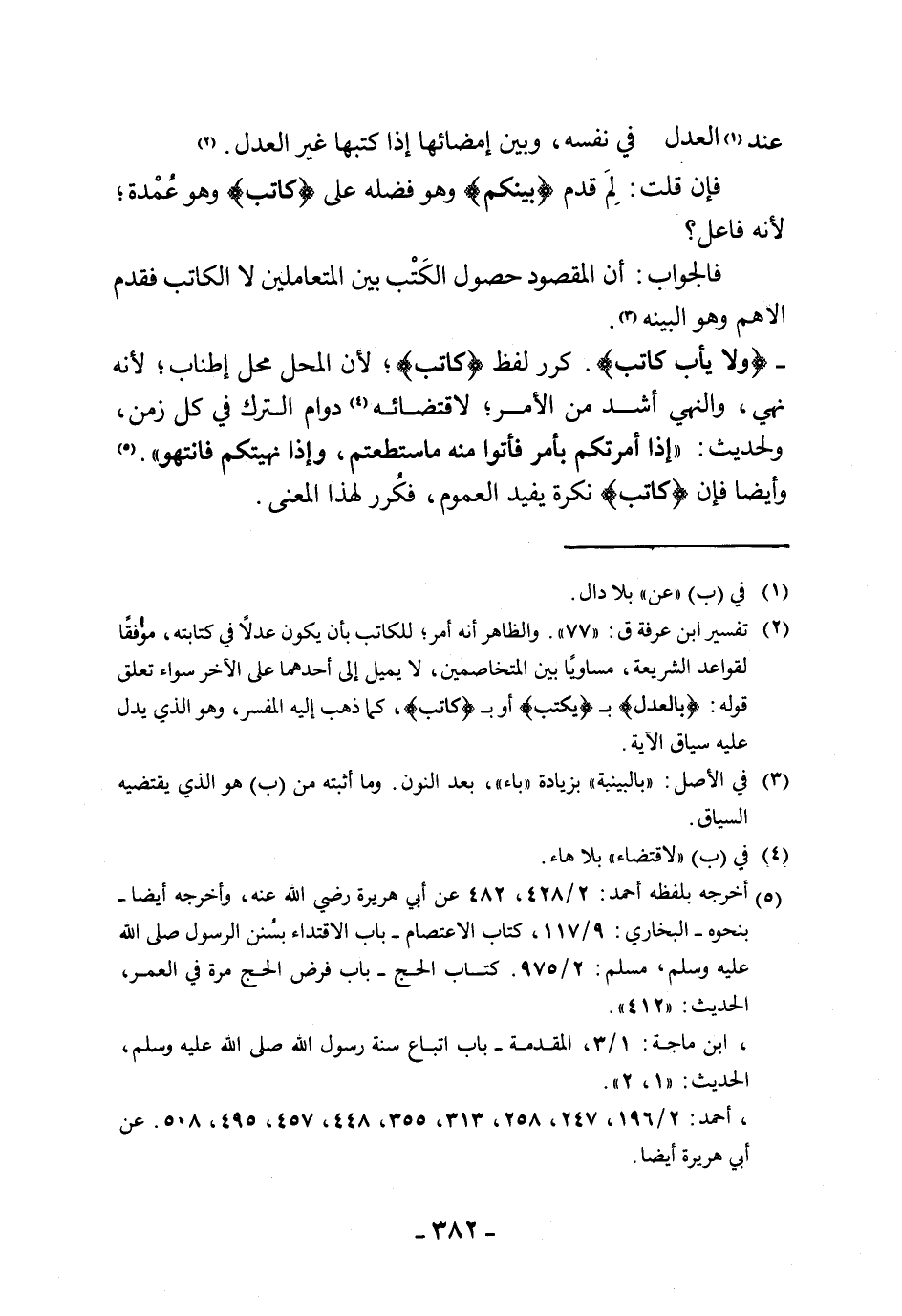 - (ولا يأب كاتب). كرر لفظ (كاتب)؛ لأن المحل محل إطناب؛ لأنه نهي، والنهي أشد من الأمر؛ لاقتضائه دوام الترك في كل زمن، ولحديث: " إذا أمرتكم بأمر فأتوا منه ماستطعتم، وإذا نهيتكم فانتهوا ".