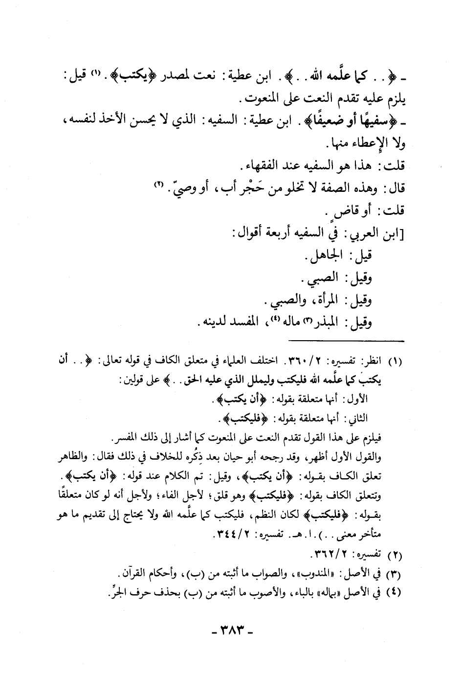 - (. . كما علَّمه الله. .). ابن عطية: نعت لمصدر (يكتب). قيل: يلزم عليه تقدم النعت على المنعوت.