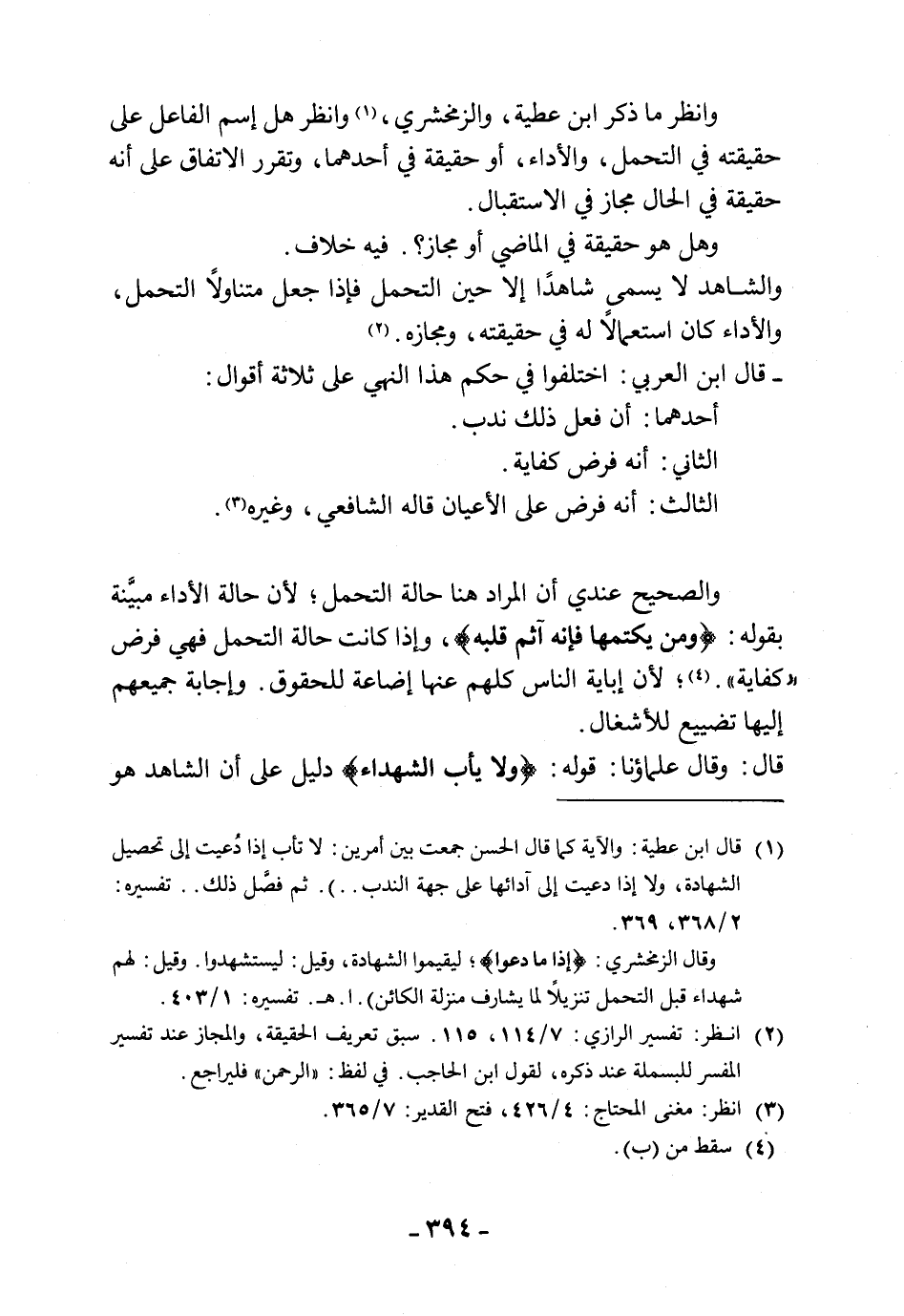 وانظر ما ذكر ابن عطية، والزمخشري، وانظر هل اسم الفاعل على حقيقته في التحمل، والأداء، أو حقيقة في أحدهما، وتقرر الاتفاق على أنه حقيقة في الحال مجاز في الاستقبال.