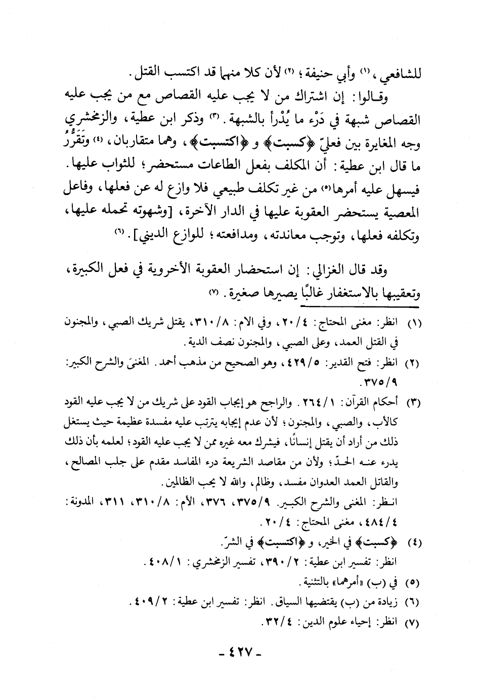 وقالوا: إن اشتراك من لا يجب عليه القصاص مع من يجب عليه القصاص شبهة في دَرْء ما يُدْرأ بالشبهة. وذكر ابن عطية، والزمخشري وجه المغايرة بين فعليّ (كسبت) و (اكتسبت)، وهما متقاربان، وتَقَرُّر ما قال ابن عطية: أن المكلف بفعل الطاعات مستحضر للثواب عليها.