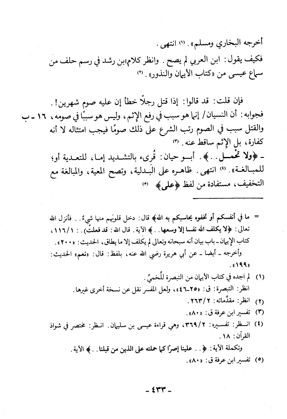 - (ولا تحْمل. .). أبو حيان: قُرئ بالتشديد إما، للتعدية أو للمبالغة ". انتهى. ظاهره على الَبدلية، وتصح المعية، والمبالغة مع التخفيف، مستفادة من لفظ (على)