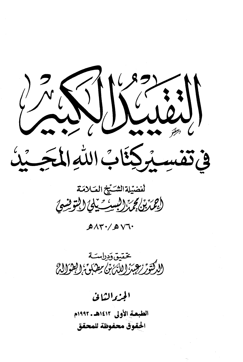 الكتاب: التقييد الكبير في تفسير كتاب الله المجيد للبَسِيْليِّ