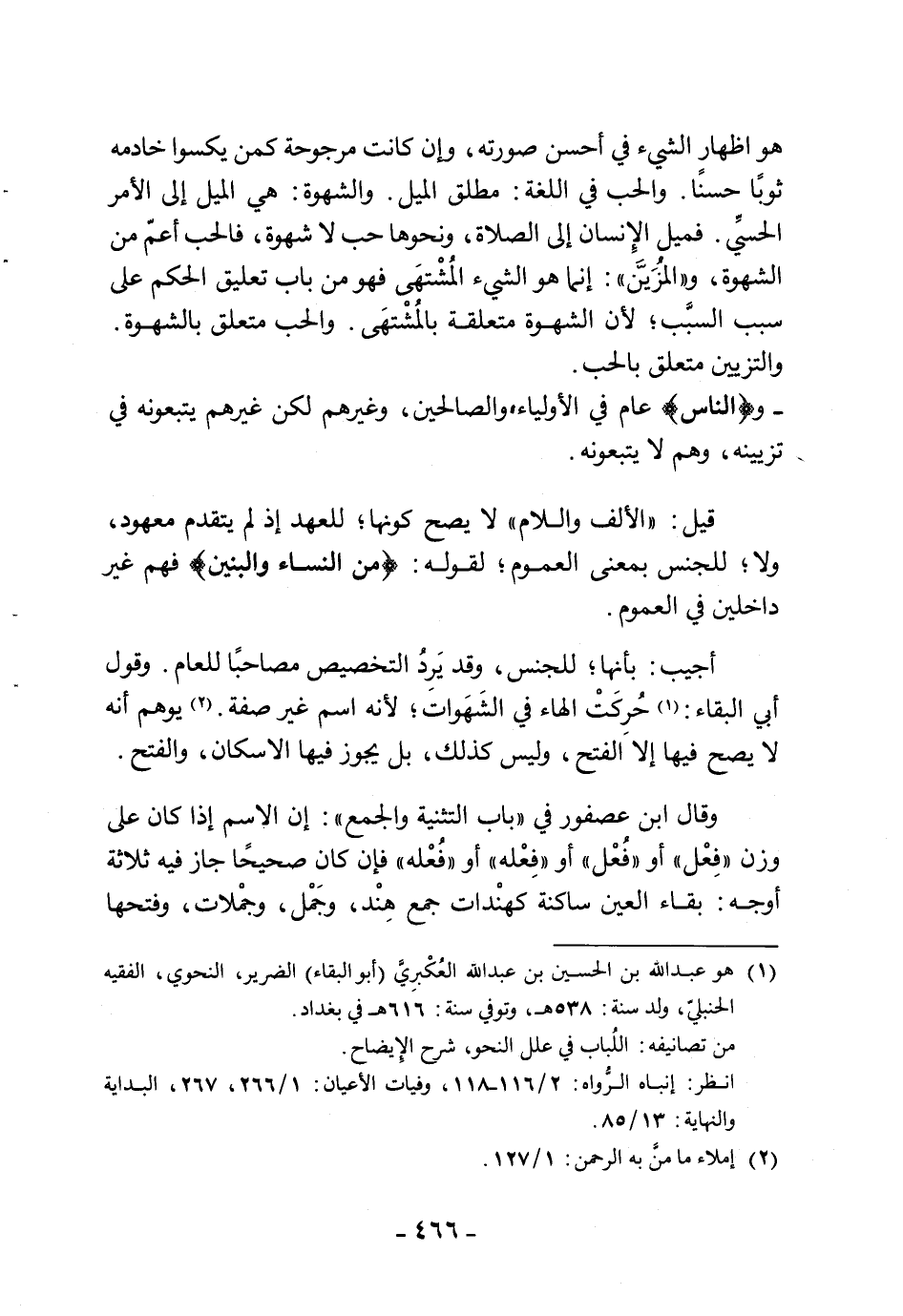 أجيب: بأنها للجنس، وقد يَرِدُ التخصيص مصاحبًا للعام. وقول أبي البقاء: حُركَتْ الهاء في الشهَوات؛ لأنه اسم غير صفة. يوهم أنه لا يصح فيها إلا الفتح، وليس كذلك، بل يجوز فيها الإسكان، والفتح.