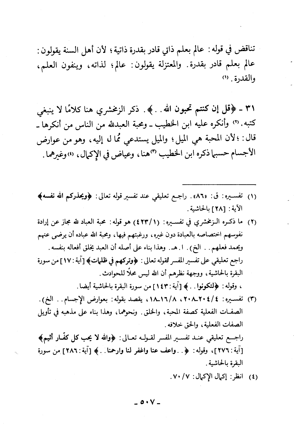 31 - (قل إن كنتم تحبون اللَّه. .). ذكر الزمخشري هنا كلامًا لا ينبغي كتبه. وأنكره عليه ابن الخطيب - ومحبة العبد للَّه من الناس من أنكرها - قال:؛ لأن المحبة هي الميل، والميل يستدعي مُمالًا إليه، وهو من عوارض الأجسام حسبما ذكره ابن الخطيب هنا، وعياض في " الإِكمال "، وغيرهما.
