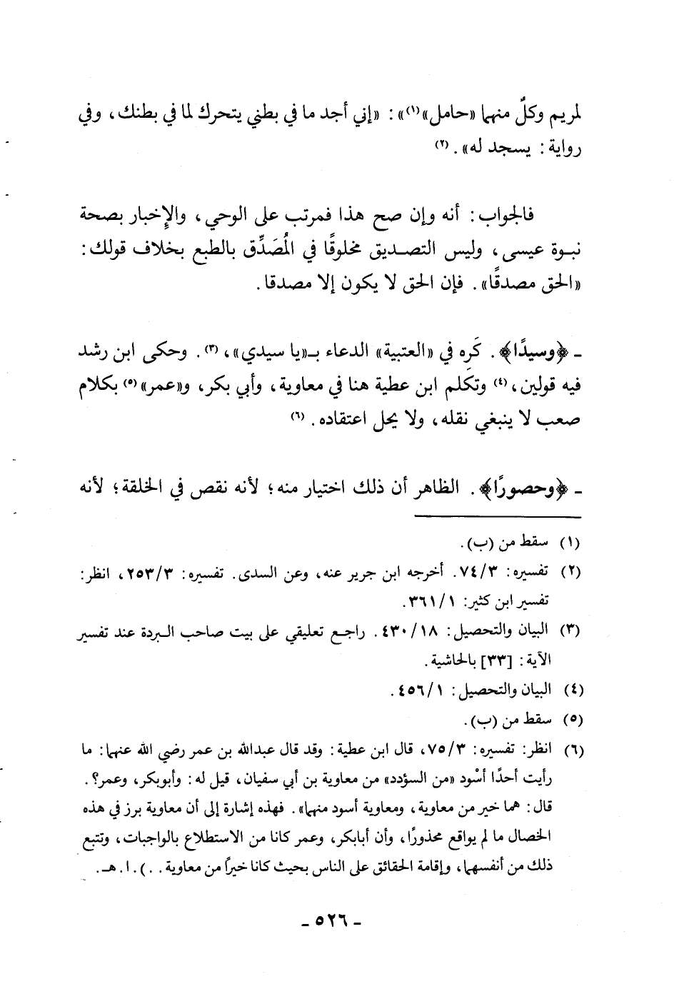 - (وحصورًا). الظاهر أن ذلك اختيار منه؛ لأنه نقص في الخلقة؛ لأنه