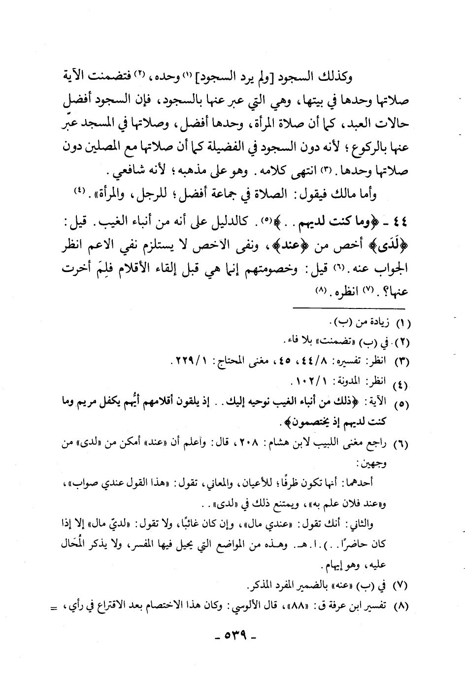 44 - (وما كنت لديهم. .). كالدليل على أنه من أنباء الغيب. قيل: (لَدَى) أخص من (عند)، ونفي الأخص لا يستلزم نفي الأعم انظر الجواب عنه. قيل: وخصومتهم إنما هي قبل إلقاء الأقلام فلِمَ أخرت عنها؟. انظره.