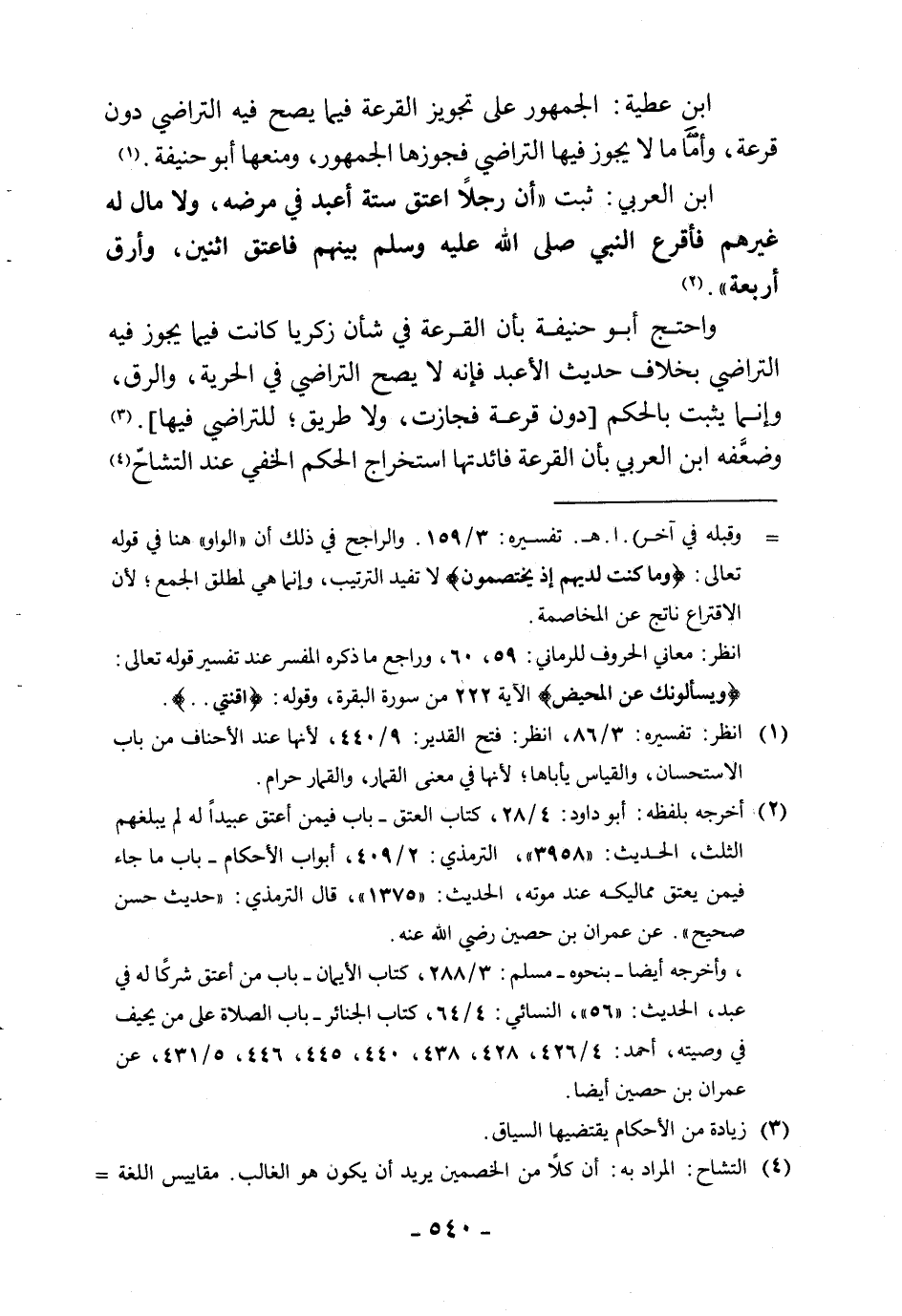 ابن العربي: ثبت " أن رجلاً اعتق ستة أعبد في مرضه، ولا مال له