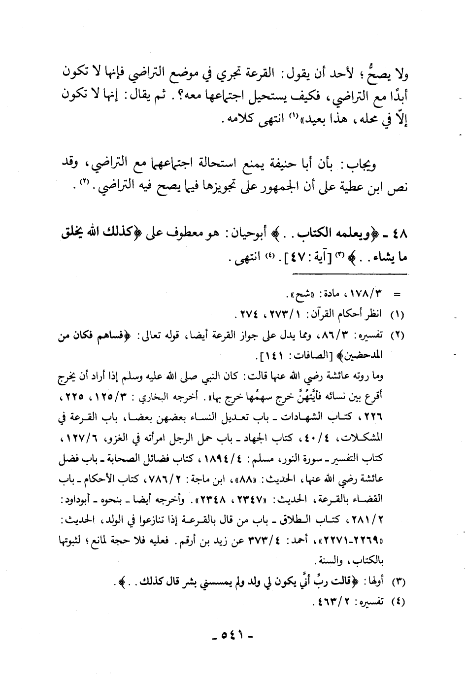 ولا يصحُّ لأحد أن يقول: القرعة تجري في موضع التراضي فإنها لا تكون أبدًا مع التراضي، فكيف يستحيل اجتماعها معه؟. ثم يقال: إنها لا تكون إلّا في محله، هذا بعيد " انتهى كلامه.