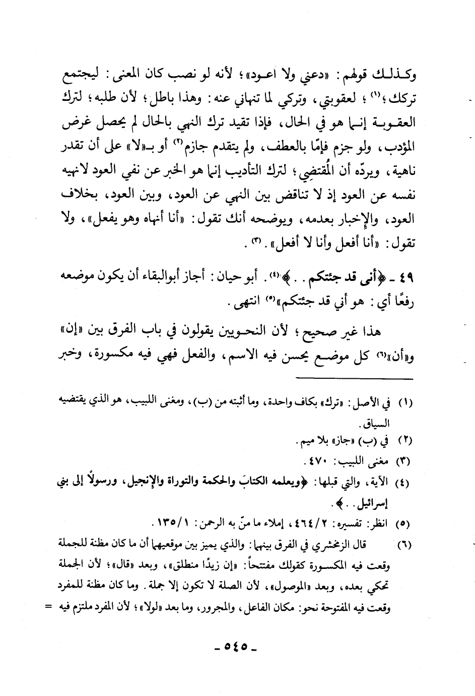 49 - (أَنِّي قَدْ جِئْتُكُمْ. .). أبو حيان: أجاز أبو البقاء أن يكون موضعه رفعًا أي: هو أني قد جئتكم " انتهى.