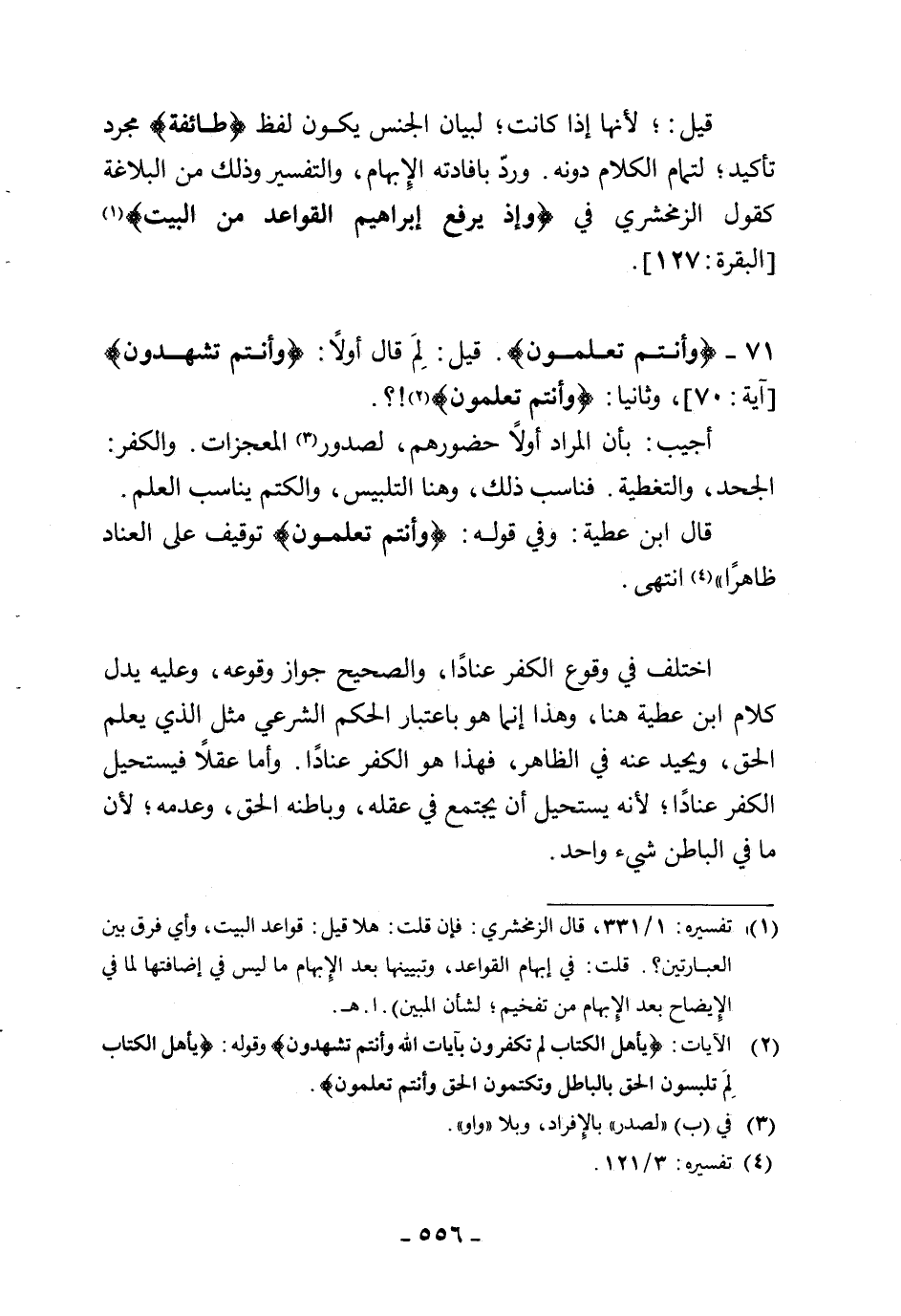 71 - (وأنتم تعلمون). قيل: لِمَ قال أولا: (وأنتم تشهدون).