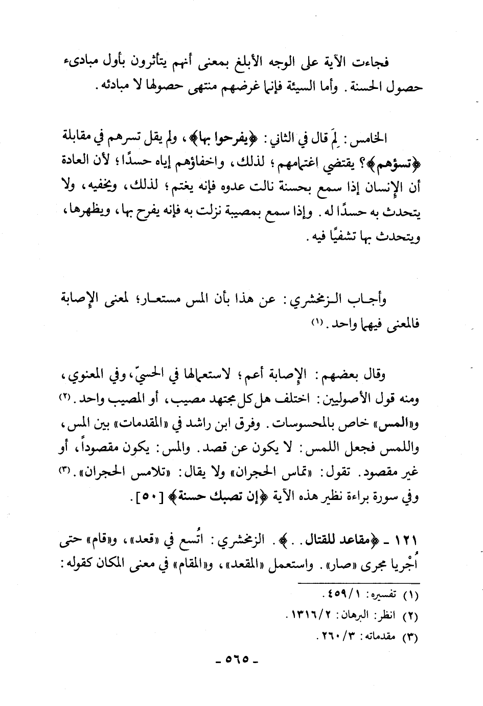 121 - (مقاعد للقتال. . .) الزمخشري: اتُسع في " قعد "، و " قام " حتى أُجْريا مجرى " صار ". واستعمل " المقعد "، و " المقام " في معنى المكان كقوله: