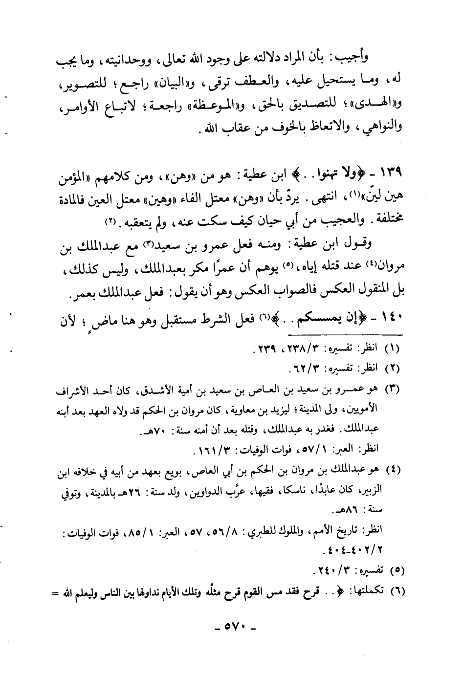 139 - (ولا تهنوا. .) ابن عطية: هو من " وهن "، ومن كلامهم لا المؤمن هين لين، انتهى. يردّ بأن " وهن " معتل الفاء " وهن " معتل العين فالمادة مختلفة. والعجيب من أبي حيان كيف سكت عنه، ولم يتعقبه.