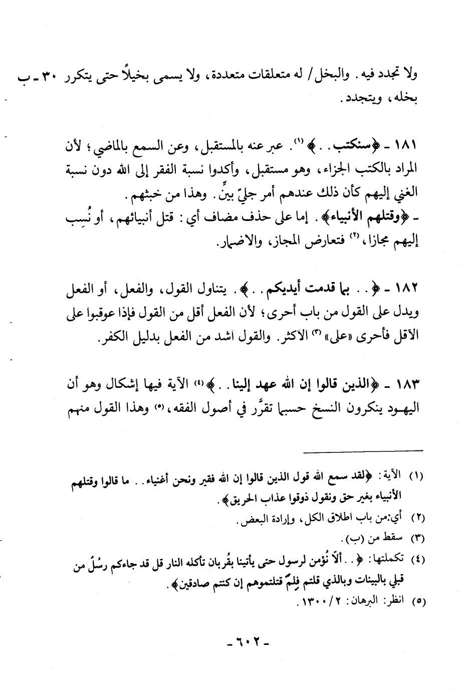 183 - (الذين قالوا إن اللَّه عهد إلينا.). الآية فيها إشكال وهو أن اليهود ينكرون النسخ حسبما تقرَّر في أصول الفقه، وهذا القول منهم
