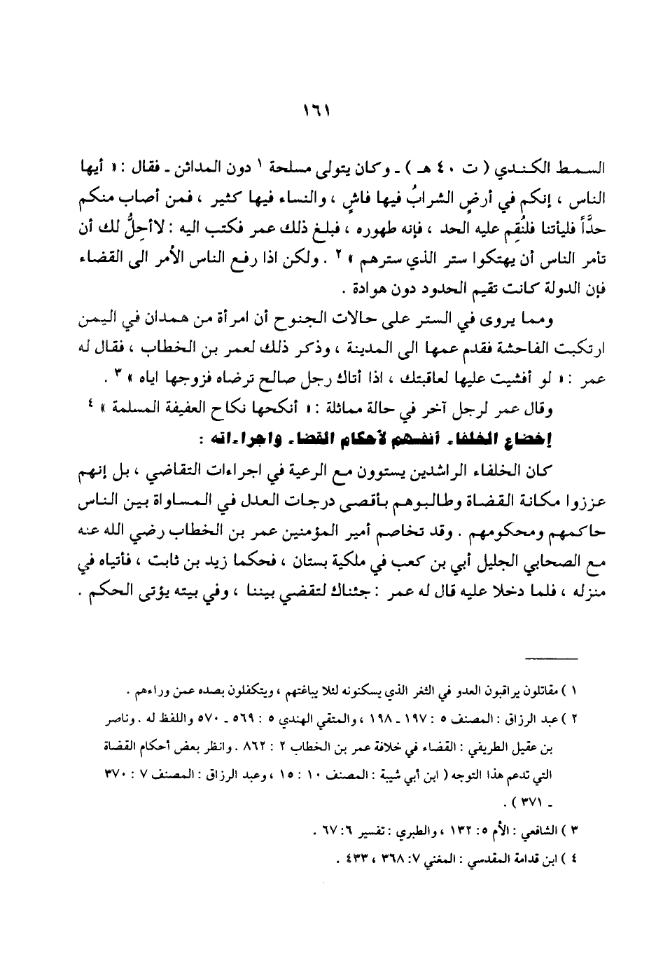 (¬2) عبد الرزاق: المصنف 5: 197 - 198، والمتقي الهندي 5: 569 - 570 واللفظ له. وناصر بن عقيل الطريفي: القضاء في خلافة عمر بن الخطاب 2: 862. وانظر بعض أحكام القضاة التي تدعم هذا التوجه (ابن أبي شيبة: المصنف 10: 15، وعبد الرزاق: المصنف 7: 370 - 371).
