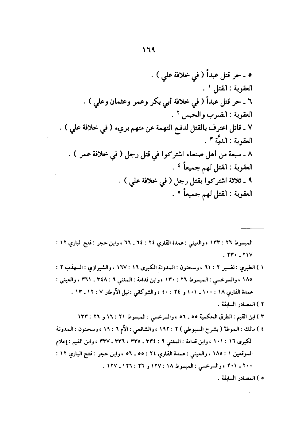 6 - حر قتل عبداً (في خلافة أبي بكر وعمر وعثمان وعلي).