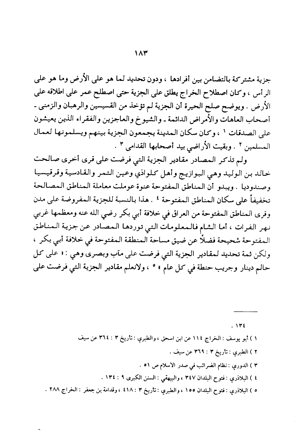 (¬5) البلاذري: فتوح البلدان 155، والطبري: تأريخ 3: 418، وقدامة بن جعفر: الخراج 288.