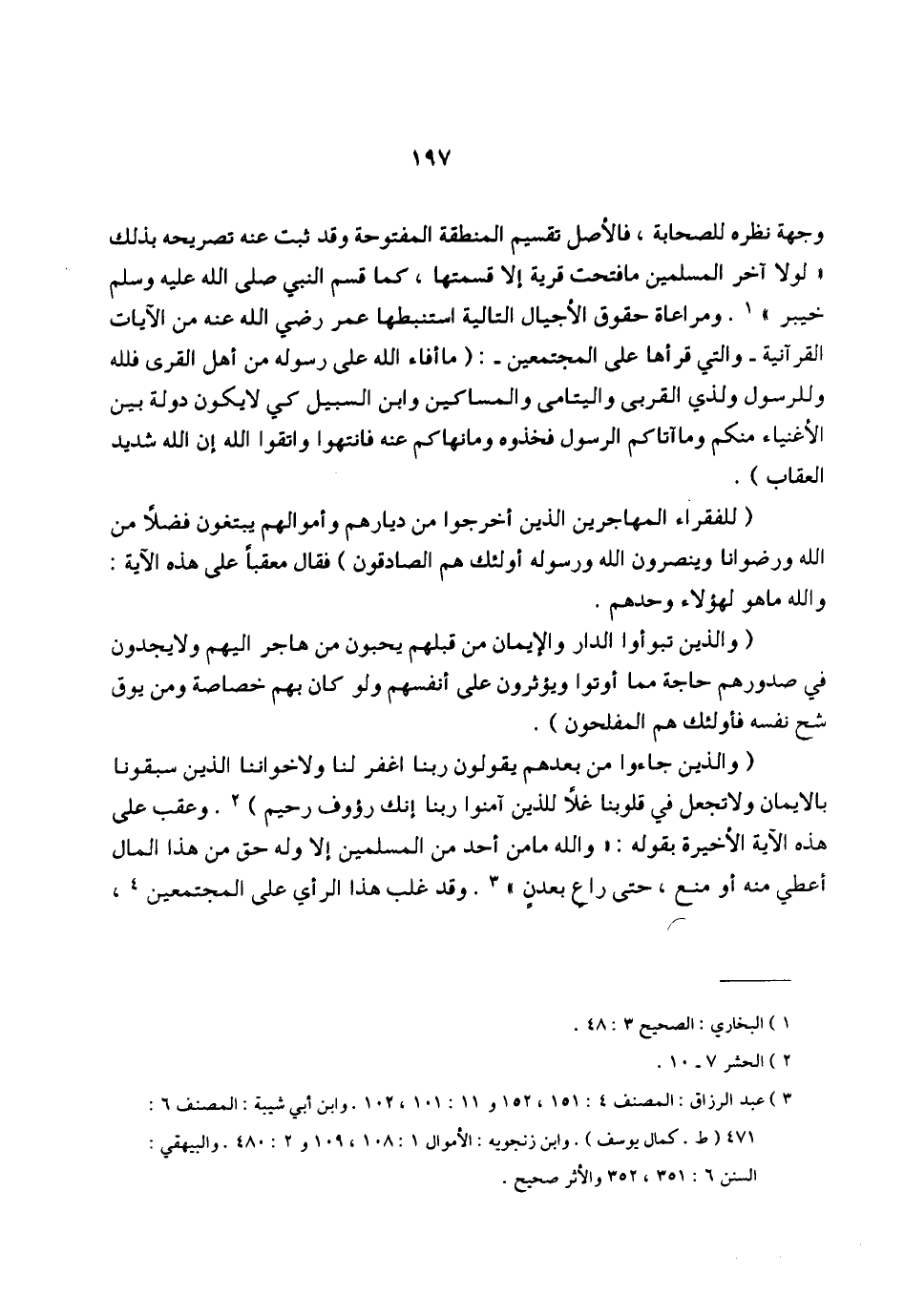 (¬3) عبد الرزاق: المصنف 4: 151، 152 و 11: 101، 102. وابن أبي شيبة: المصنف 6: 471 (ط. كمال يوسف). وابن زنجويه: الأموال 1: 108، 109 و 2: 480. والبيهقي: السنن 6: 351، 352 والأثر صحيح.