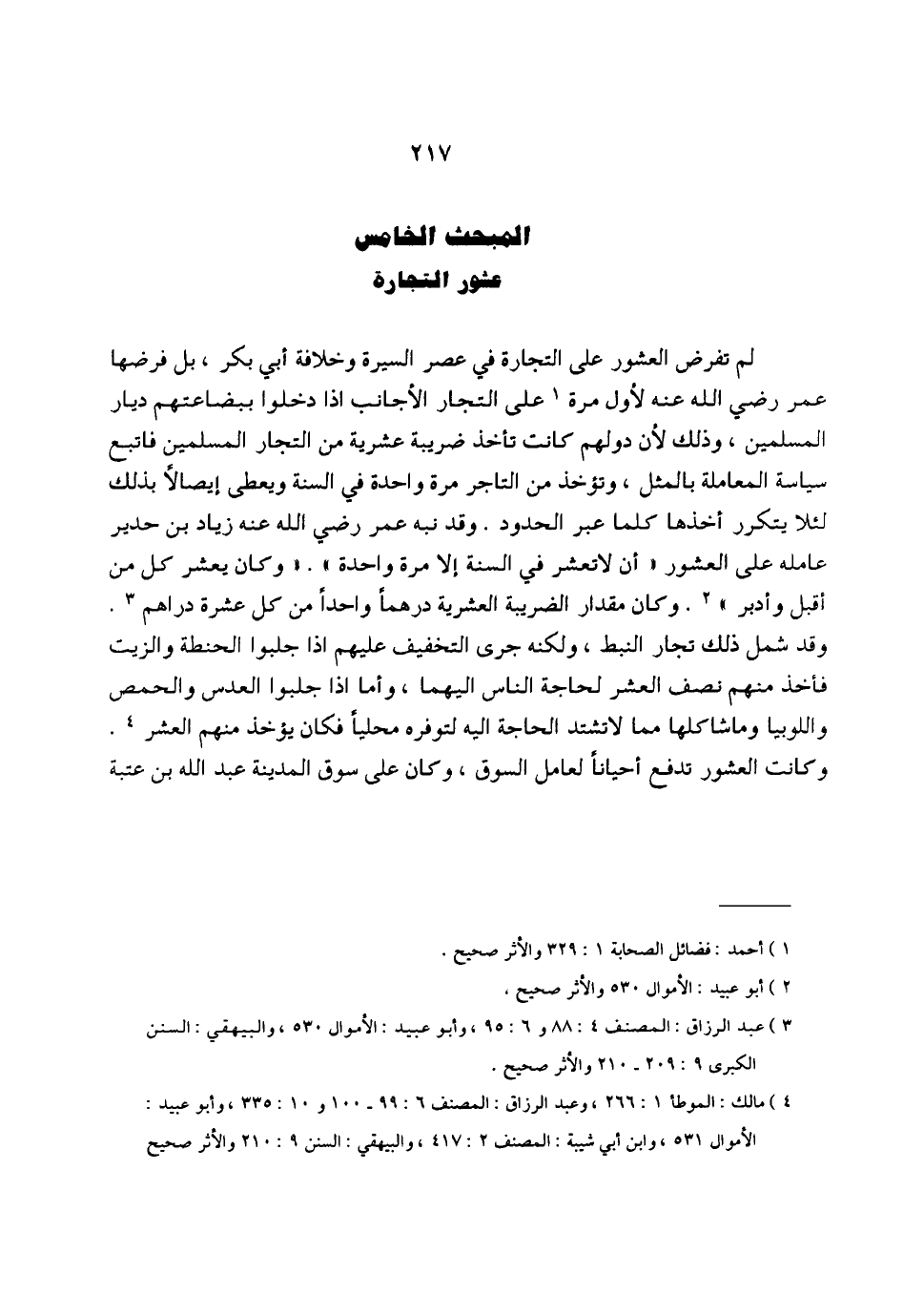 (¬4) مالك: الموطأ 1: 266، وعبد الرزاق: المصنف 6: 99 - 100 و 10: 335، وأبو عبيد: الأموال 531، وابن أبي شيبة: المصنف 2: 417، والبيهقي: السنن 9: 210 والأثر صحيح