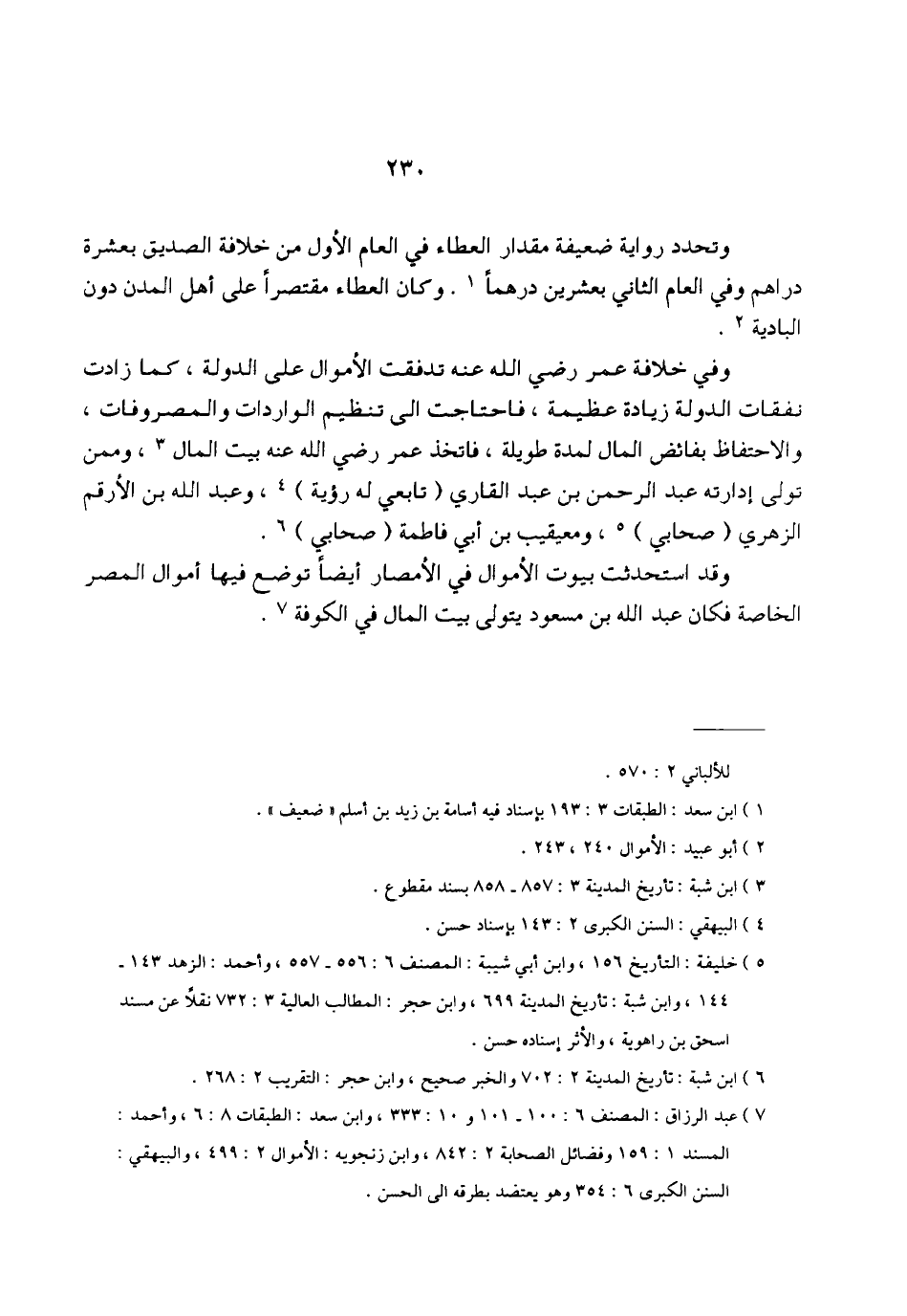 (¬7) - عبد الرزاق: المصنف 6: 100 - 101 و 10: 333، وابن سعد: الطبقات 8: 6، وأحمد: المسند 1: 159 وفضائل الصحابة 2: 842، وابن زنجويه: الأموال 2: 499، والبيهقي: السنن الكبرى 6: 354 وهو يعتضد بطرقه إلى الحسن.