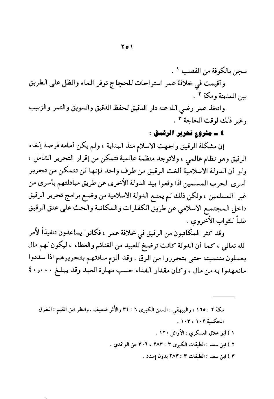 إن مشكلة الرقيق واجهت الإسلام منذ البداية، ولم يكن أمامه فرصة إلغاء الرقيق وهو نظام عالمي، ولا توجد منظمة عالمية تتمكن من إقرار التحرير الشامل، ولو أن الدولة الإسلامية ألغت الرقيق من طرف واحد فإنها لن تتمكن من تحرير أسرى الحرب المسلمين إذا وقعوا بيد الدولة الأخرى عن طريق مبادلتهم بأسرى من غير المسلمين، ولكن ذلك لم يمنع الدولة الإسلامية من وضع برامج تحرير الرقيق داخل المجتمع الإسلامي عن طريق الكفارات والمكاتبة والحث على عتق الرقيق طلباً للثواب الأخروي.