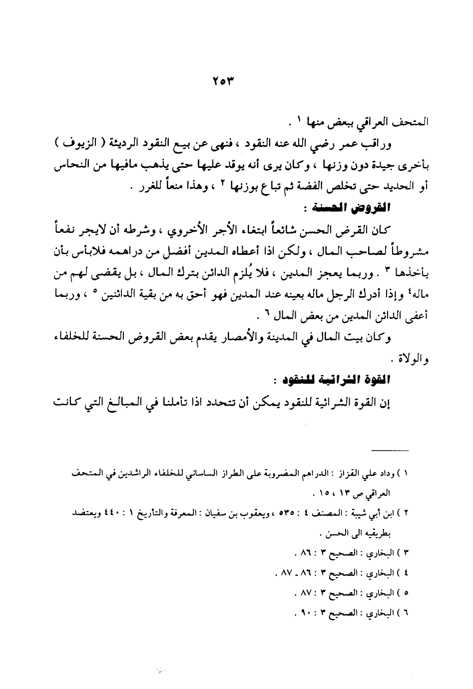 كان القرض الحسن شائعاً ابتغاء الأجر الأخروي، وشرطه أن لا يجر نفعاً مشروطاً لصاحب المال، ولكن إذا أعطاه المدين أفضل من دراهمه فلا بأس بأن يأخذها (¬3). وربما يعجز المدين، فلا يُلزم الدائن بترك المال، بل يقضى لهم من ماله (¬4) وإذا أدرك الرجل ماله بعينه عند المدين فهو أحق به من بقية الدائنين (¬5)، وربما أعفى الدائن المدين من بعض المال (¬6).