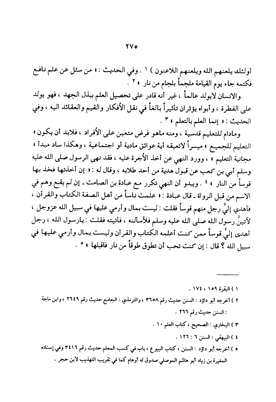 (¬5) أخرجه أبو داؤد: السنن، كتاب البيوع، باب في كسب المعلم حديث رقم 3416 وفي إسناده المغيرة بن زياد أبو هاشم الموصلي صدوق له أوهام كما في تقريب التهذيب لابن حجر.