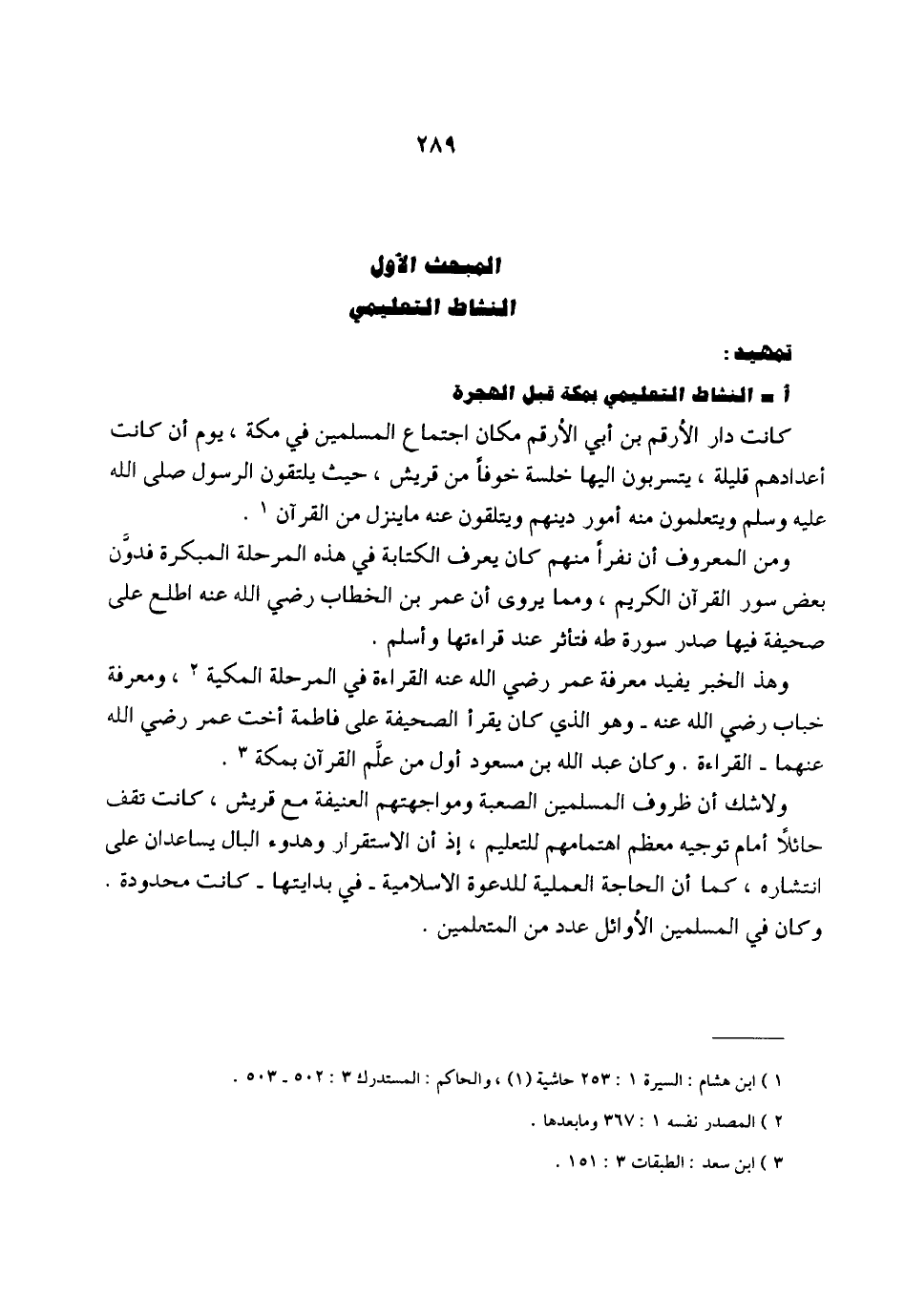 وهذا الخبر يفيد معرفة عمر رضي الله عنه القراءة في المرحلة المكية (¬2)، ومعرفة خباب رضي الله عنه- وهو الذي كان يقرأ الصحيفة على فاطمة أخت عمر رضي الله عنهما- القراءة. وكان عبد الله بن مسعود أول من علَّم القرآن بمكة (¬3).