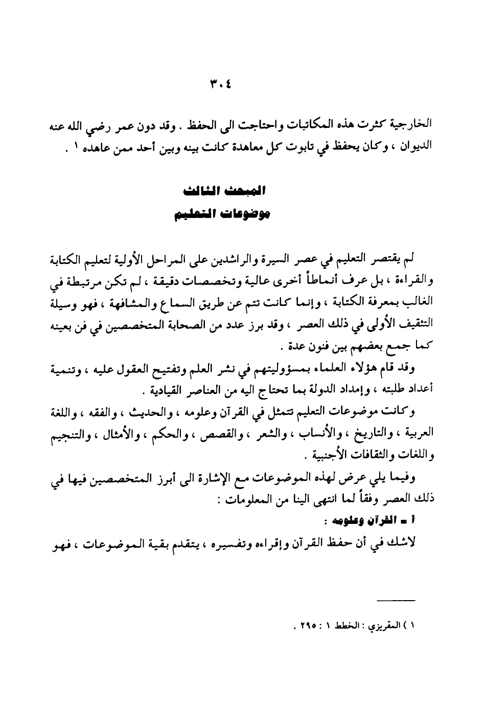 المبحث الثالث: موضوعات التعليم