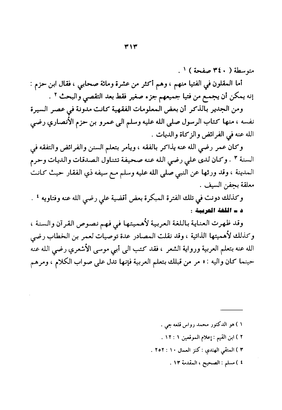 أما المقلون في الفتيا منهم، وهم أكثر من عشرة ومائة صحابي، فقال ابن حزم: إنه يمكن أن يجمع من فتيا جميعهم جزء صغير فقط بعد التقصي والبحث (¬2).