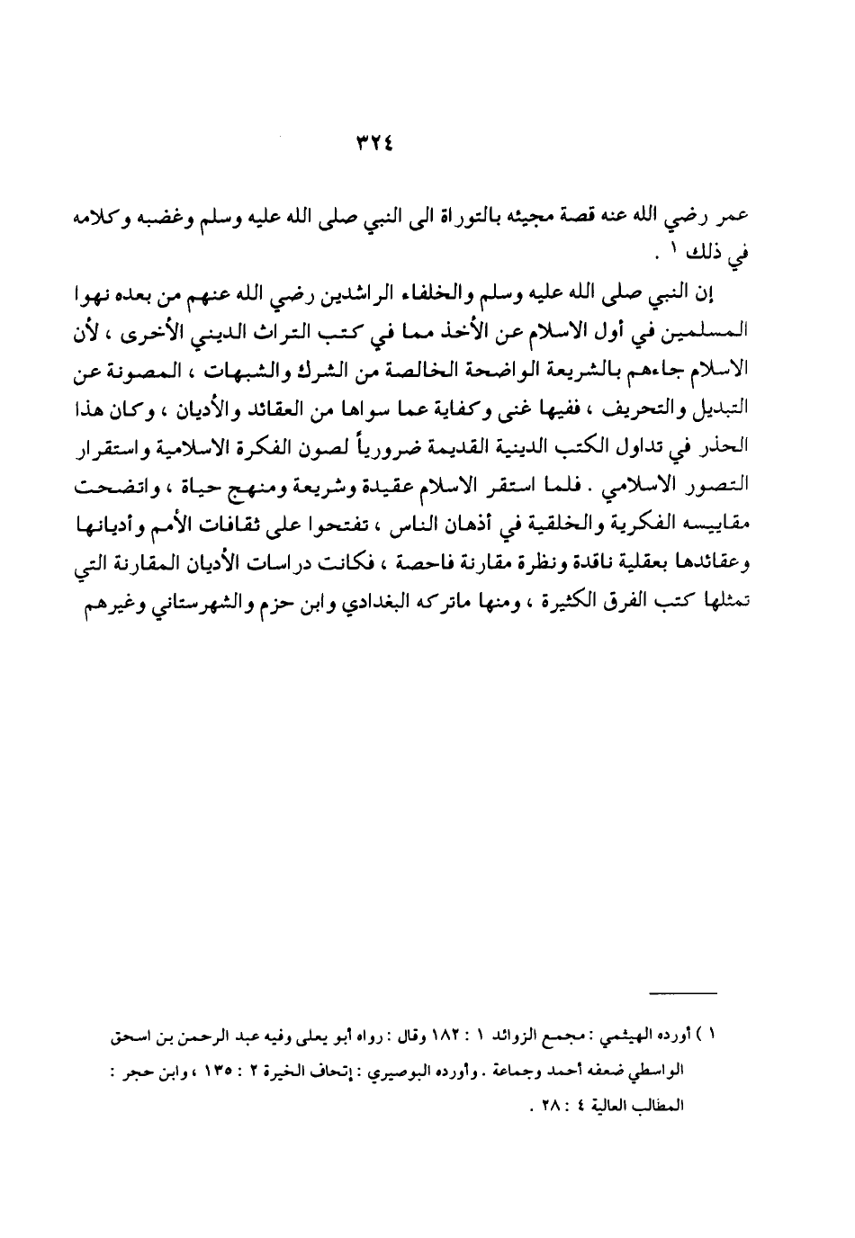 عمر رضي الله عنه قصة مجيئه بالتوراة إلى النبي صلى الله عليه وسلم وغضبه وكلامه في ذلك (¬1).