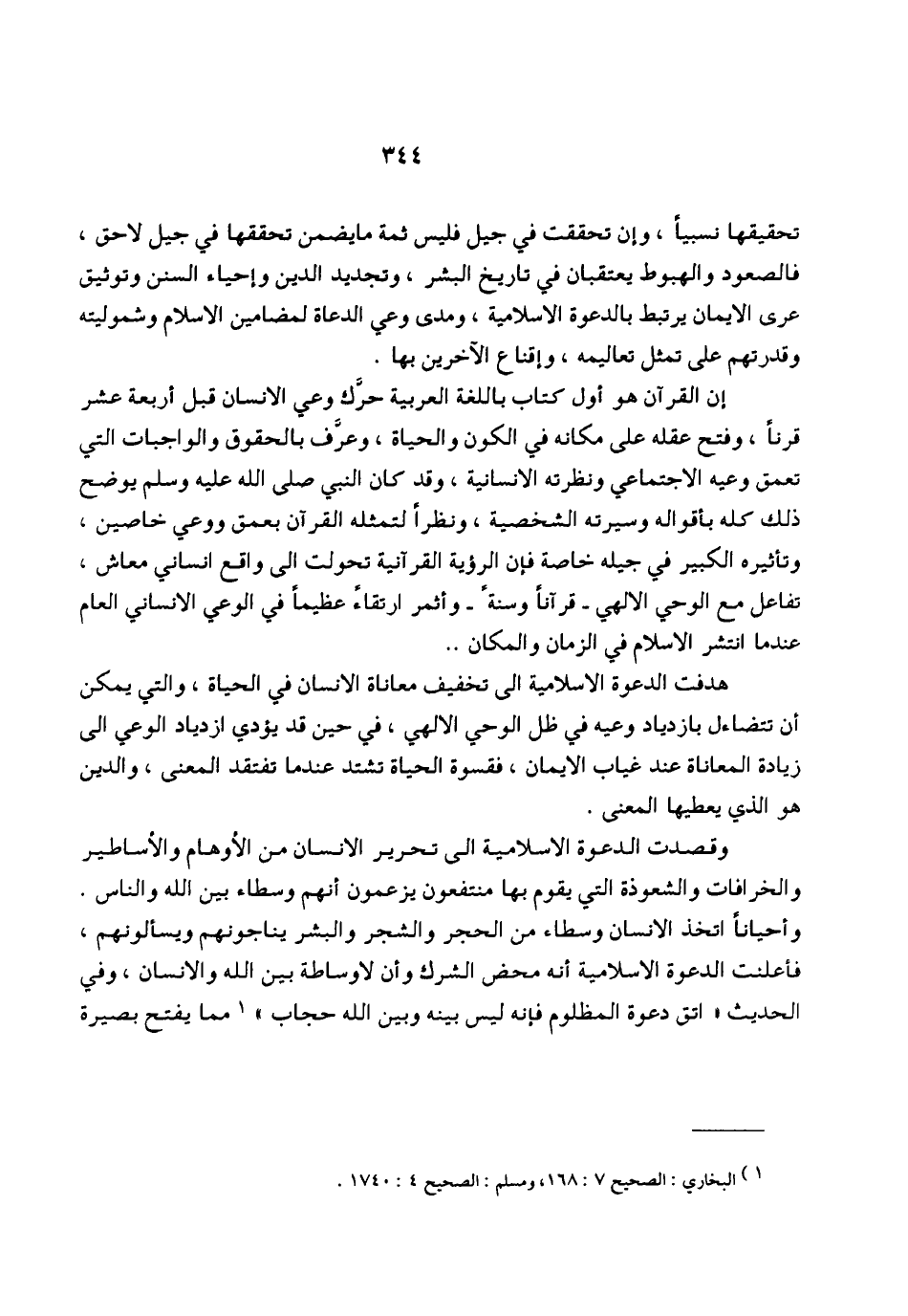 تحقيقها نسبياً، وإن تحققت في جيل فليس ثمة ما يضمن تحققها في جيل لاحق، فالصعود والهبوط يعتقبان في تاريخ البشر، وتجديد الدين وإحياء السنن وتوثيق عرى الإيمان يرتبط بالدعوة الاسلامية، ومدى وعي الدعاة لمضامين الاسلام وشموليته وقدرتهم على تمثل تعاليمه، وإقناع الآخرين بها.