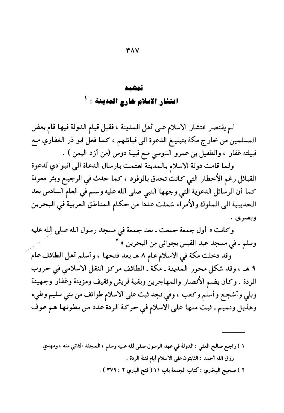 (¬1) راجع صالح العلي: الدولة في عهد الرسول صلى لله عليه وسلم، المجلد الثاني منه، ومهدي رزق الله أحمد: الثابتون على الاسلام أيام فتنة الردة.