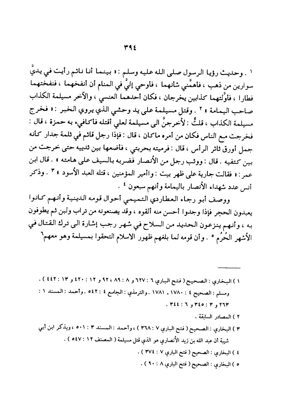 (¬2) البخاري: الصحيح (فتح الباري 7: 368)، وأحمد: المسند 3: 501، ويذكر ابن أبي شيبة أن عبد الله بن زيد الأنصاري هو الذي قتل مسيلمة (المصنف 12: 547).