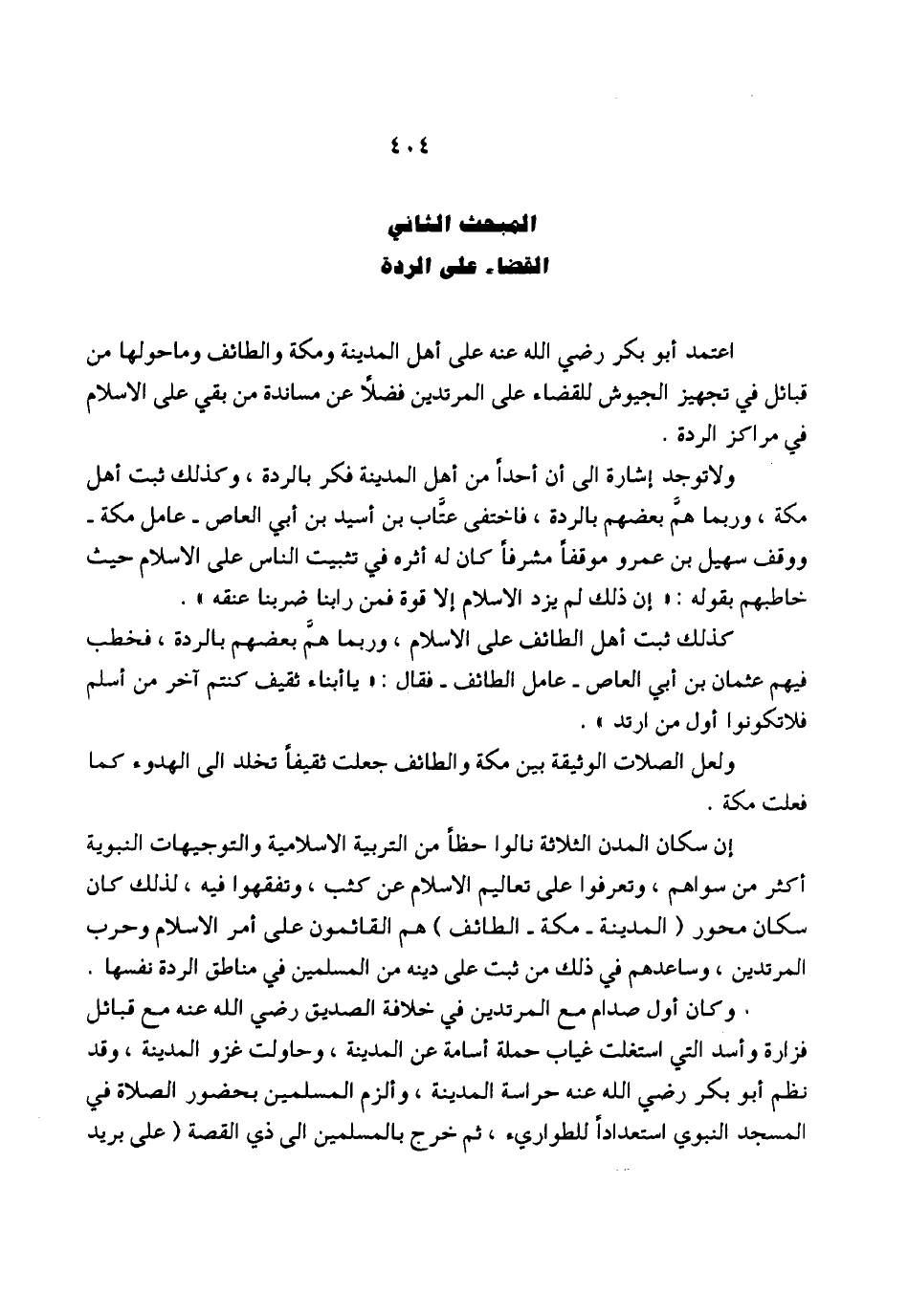 ولا توجد إشارة إلى أن أحدا من أهل المدينة فكر بالردة، وكذلك ثبت أهل مكة، وربما همَّ بعضهم بالردة، فاختفى عتَّاب بن أسيد بن أبي العاص- عامل مكة- ووقف سهيل بن عمرو موقفاً مشرفاً كان له أثره في تثبيت الناس على الاسلام حيث خاطبهم بقوله: "إن ذلك لم يزد الاسلام إلا قوة فمن رابنا ضربنا عنقه".