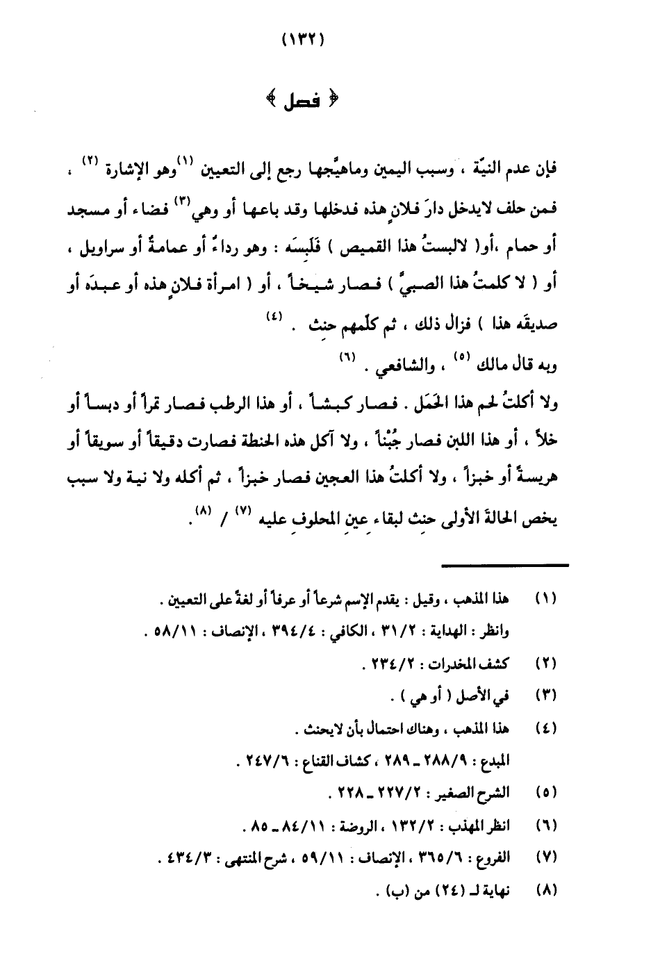 فإن عدم النية، وسبب اليمين وما هيجها رجع إلى التعيين1وهو الإشارة2، فمن حلف لا يدخل دار فلان هذه فدخلها وقد باعها أو وهي3 فضاء أو مسجد أو حمام أو "لا لبست هذا القميص" فلبسه: وهو رداء أو عمامة أو سراويل، أو "لا كلمت هذا الصبي" فصار شيخا، أو "امرأة فلان هذه أو عبده أو صديقه هذا" فزال ذلك، ثم كلمهم حنث4.