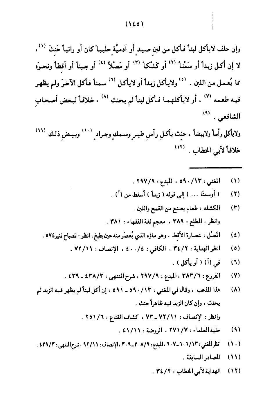 8 هذا المذهب، وقال في المغني: 13/590-591: "إن أكل لبنا لم يظهر فيه الزبد لم يحنث وإن كان الزبد فيه ظاهرا حنث".