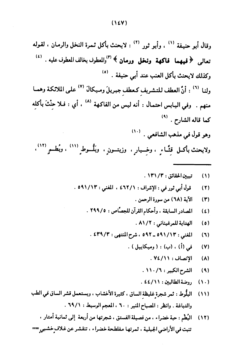 ولا يحنث بأكل قثاء، وخيار، وزيتون، وبلوط11، وبطم12،