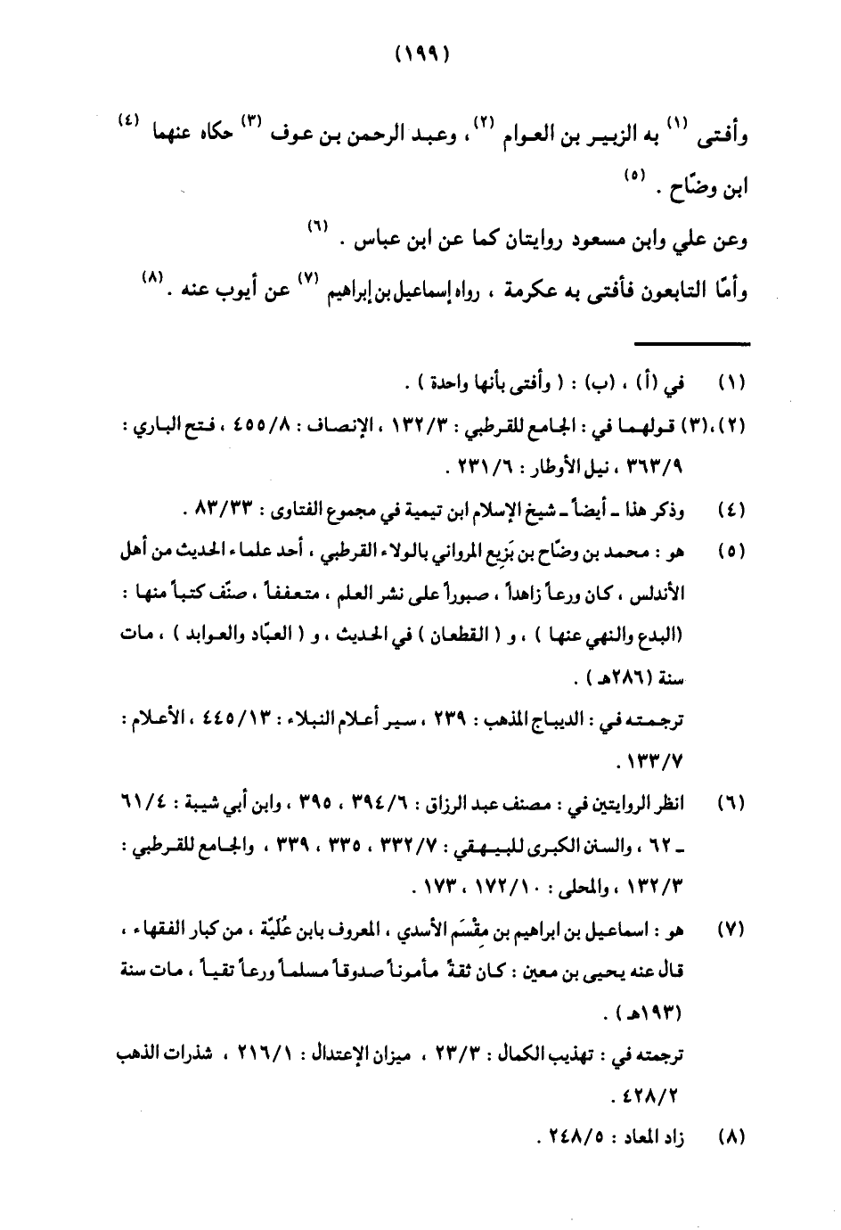 7 هو إسماعيل بن إبراهيم بن مقسم الأسدي، المعروف بابن علية، من كبار الفقهاء، قال عنه يحي بن معين: كان ثقة مأمونا صدوقا مسلما ورعا تقيا، مات سنة (193هـ) .