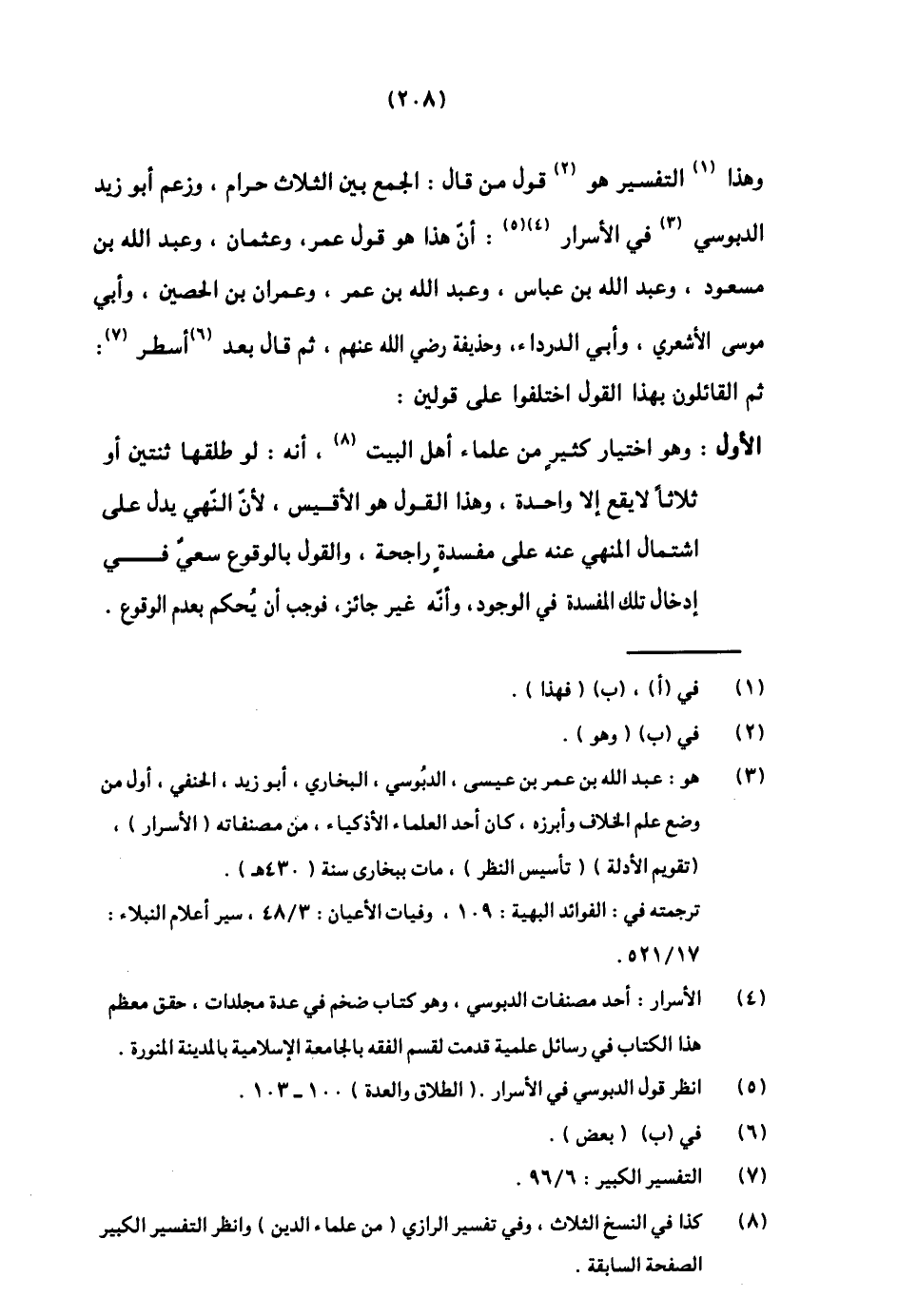 3 هو: عبد الله بن عمر بن عيسى الدبوسي، البخاري، أبو زيد، الحنفي، أول من وضع علم الخلاف وأبرزهن كان أحد العلماء الأذكياء، من مصنفاته (الأسرار) ، (تقويم الأدلة) (تأسيس النظر) مات ببخارى سنة (430هـ) .