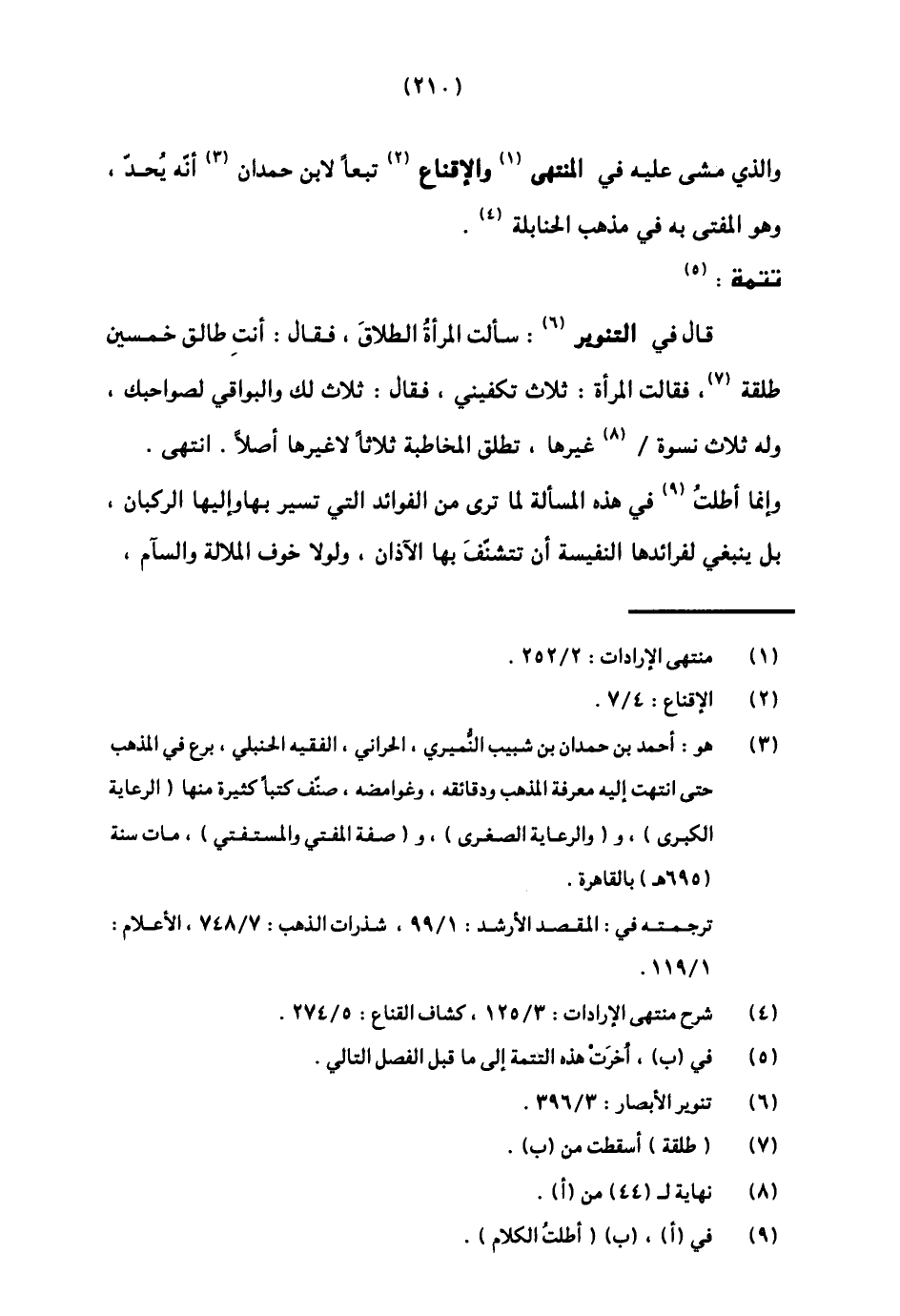 3 هو: أحمد بن حمدان بن شبيب النميري، الحراني، الفقيه الحنبلي، برع في المذهب حتى انتهت إليه معرفة المذهب ودقائقهن وغوامضه، صنف كتبا كثيرة منها (الرعاية الكبرى) ، و (الرعاية الصغرى) ، و (صفة المفتي والمستفتي) ، مات سنة (695هـ) بالقاهرة.