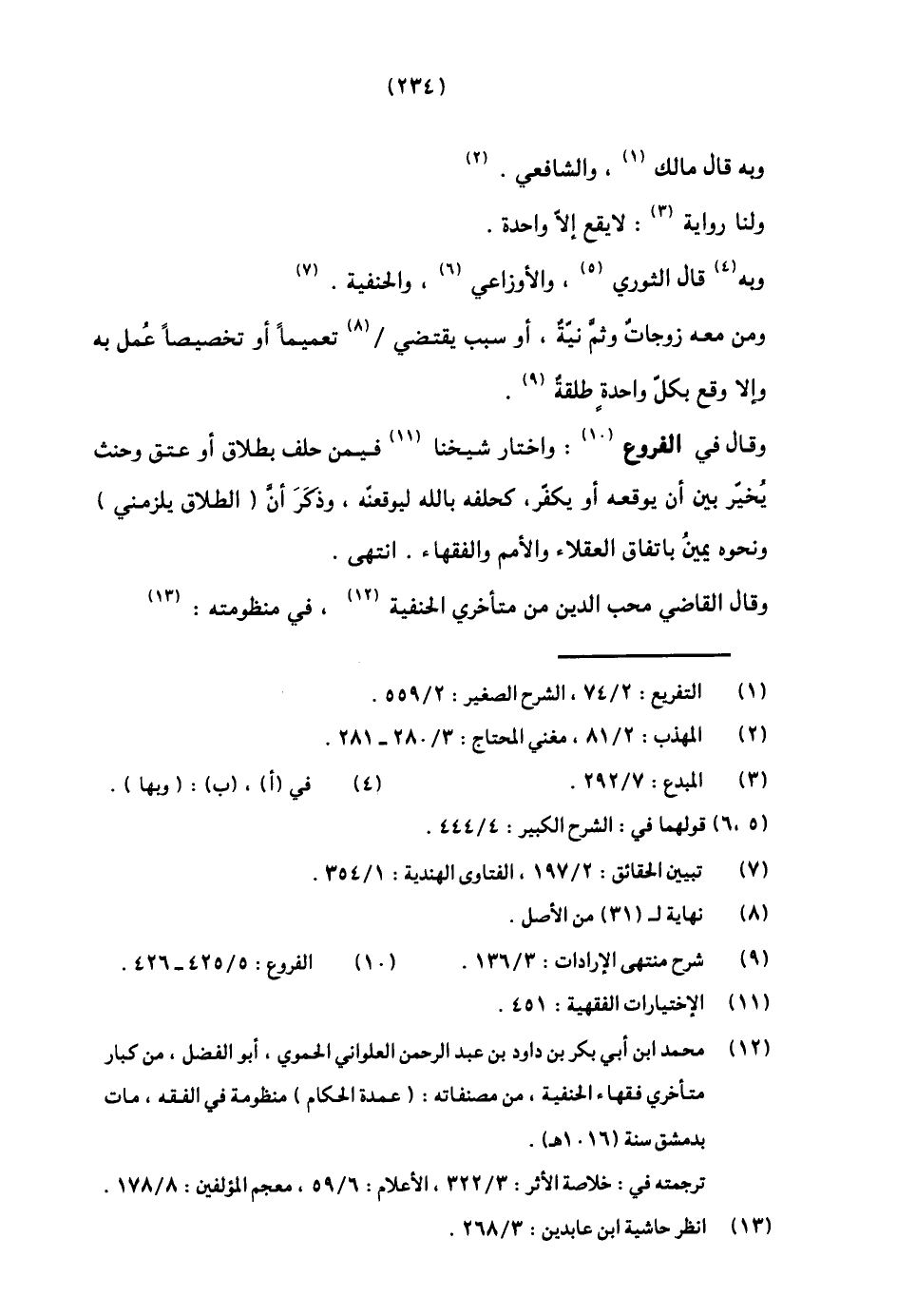 12 محمد بن أبي بكر بن داود بن عبد الرحمن العلواني الحموي، أبو الفضل، من كبار متأخري فقهاء الحنفية، من مصنفاته: (عمدة الحكام) منظومة في الفقه، مات بدمشق سنة (1016هـ) .