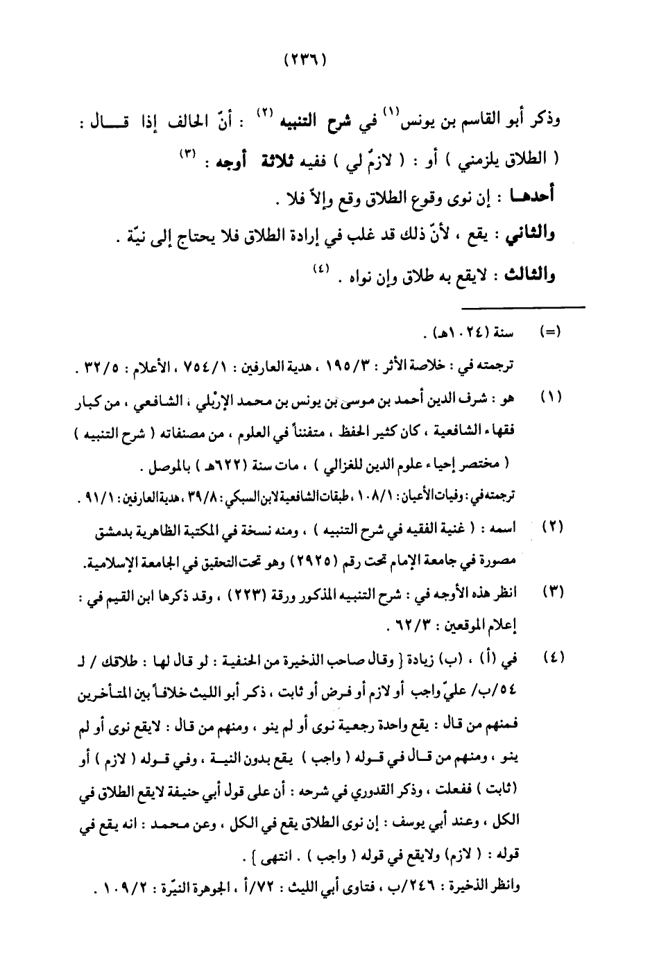 3 انظر هذه الأوجه في: شرح التنبيه المذكور ورقة (223) ، وقد ذكرها ابن القيم في: إعلام الموقعين: 3/62.