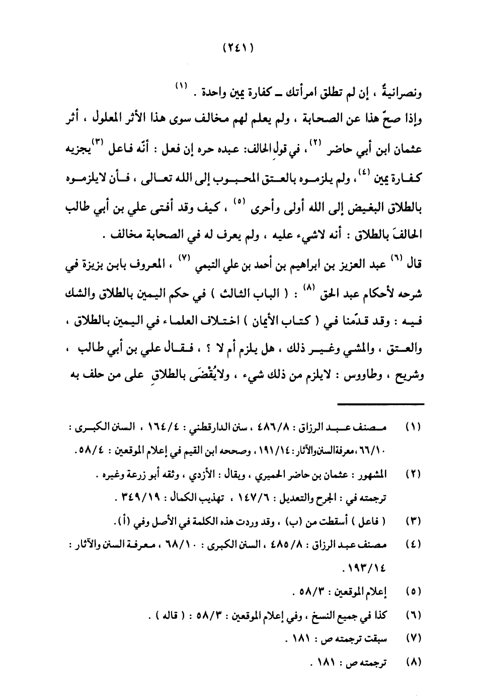 1 مصنف عبد الرزاق: 8/486، سنن الدارقطني: 4/164، السنن الكبرى: 10/66، معرفة السنن والآثار: 14/191، وصححه ابن القيم في إعلام الموقعين: 4/58.