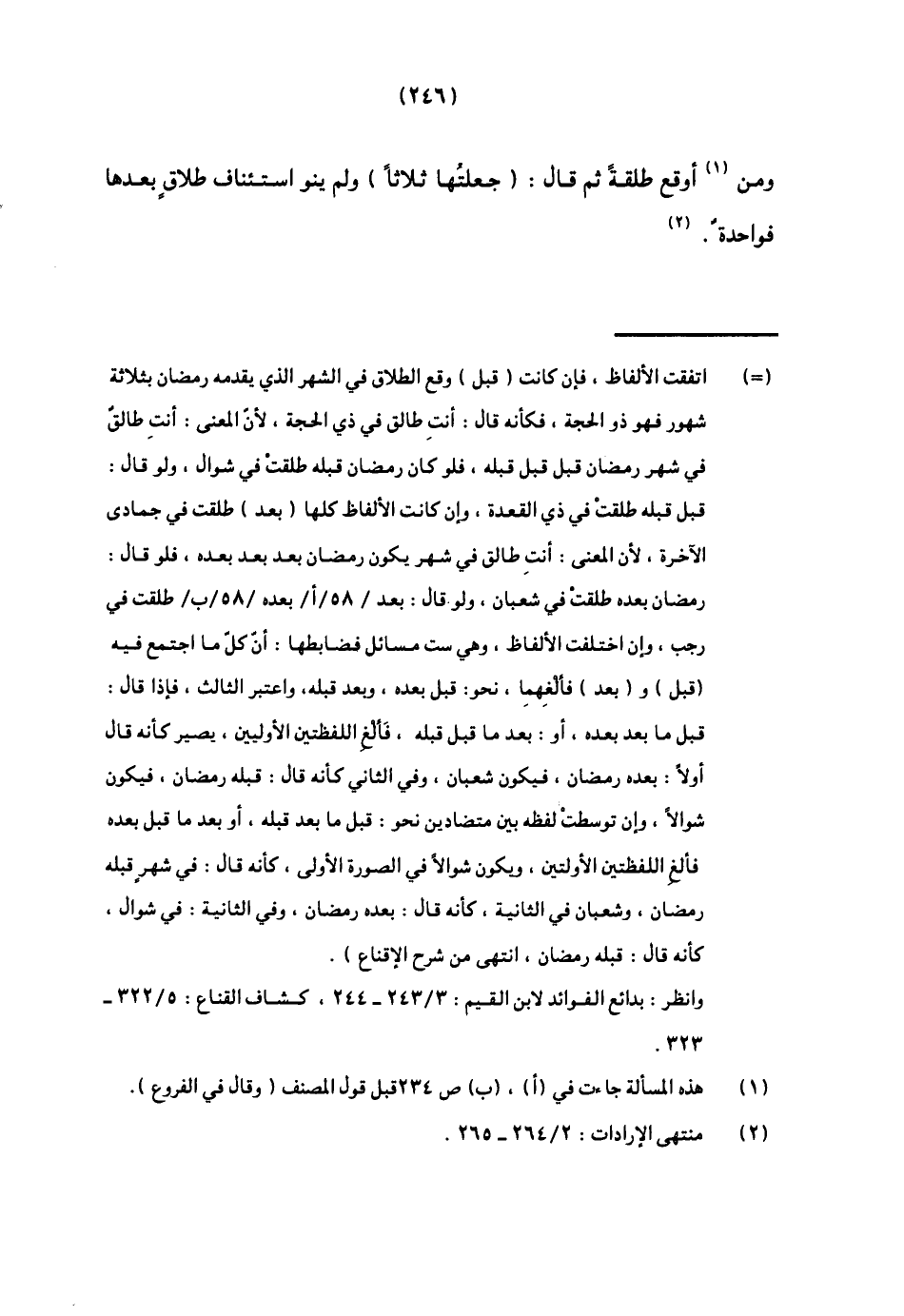 1 هذه المسألة جاءت في (أ) ، (ب) ص234 قبل قول المصنف "وقال في الفروع".