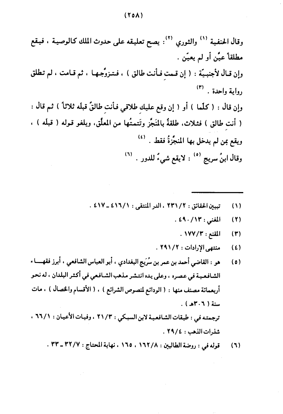 5 هو: القاضي أحمد بن عمر بن سريج البغدادي، أبو العباس الشافعي، أبرز فقهاء الشافعية في عصره، وعلى يده انتشر مذهب الشافعي في أكثر البلدان، له نحو أربعمائة مصنف منها: (الودائع لمنصوص الشرائع) (الأقسام والخصال) ، مات سنة (306هـ) .
