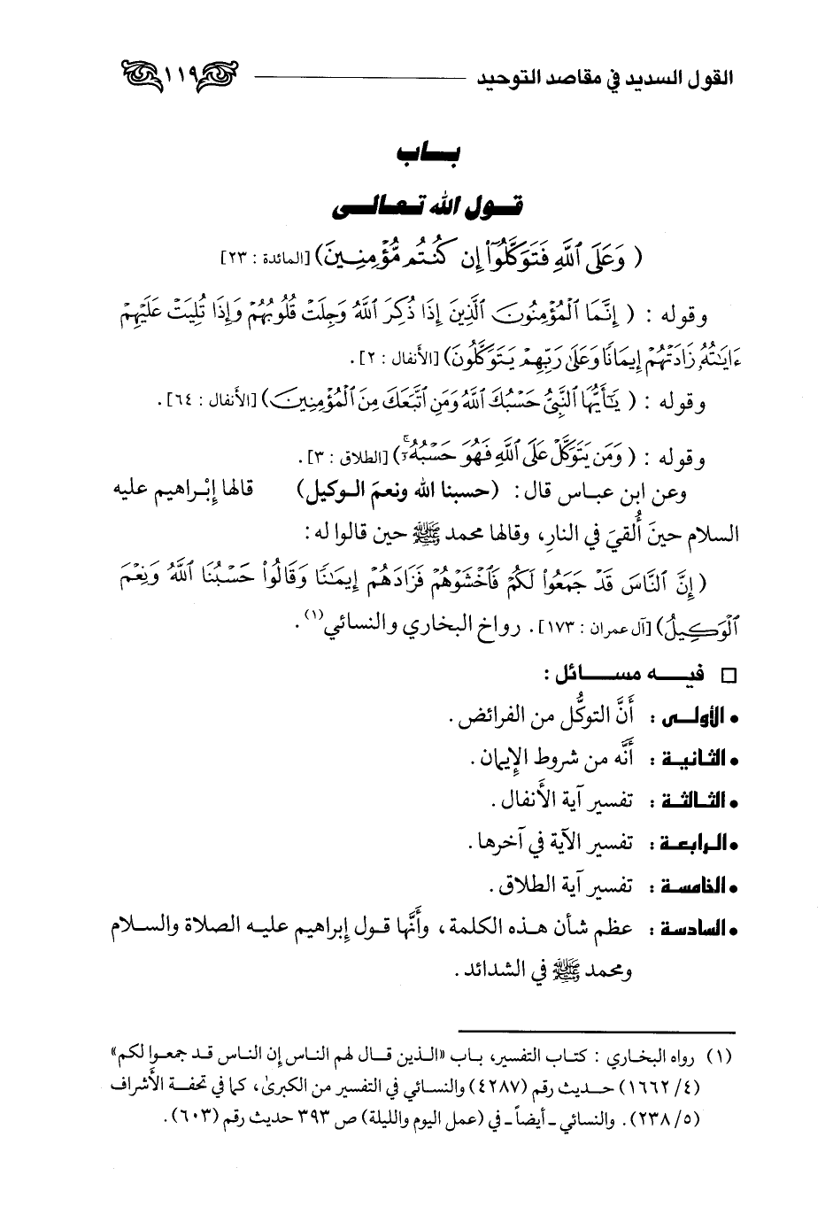 قول الله تعالى: {وَعَلَى اللَّهِ فَتَوَكَّلُوا إِنْ كُنْتُمْ مُؤْمِنِينَ} 1.