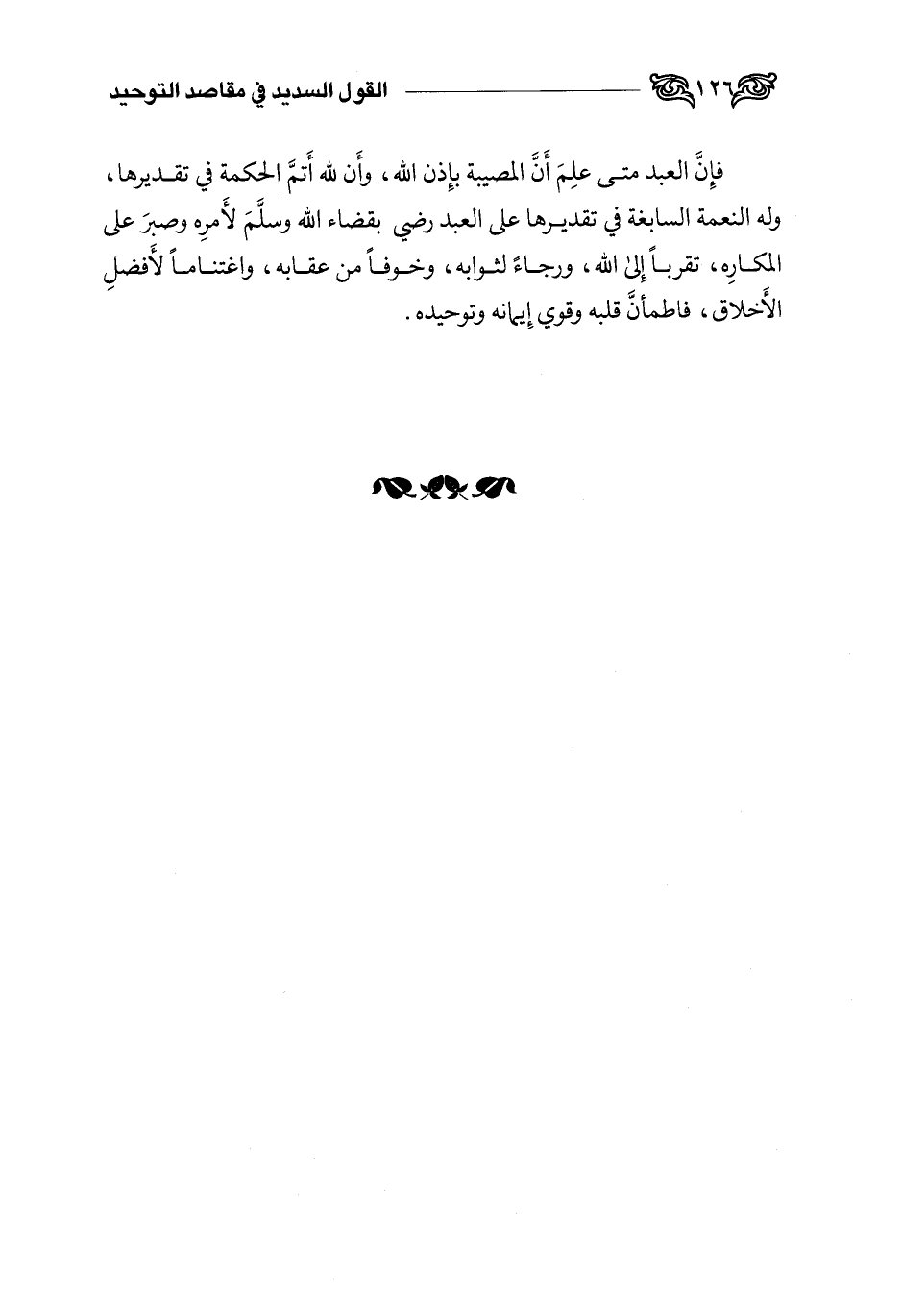 فإن العبد متى علم أن المصيبة بإذن الله، وأن لله أَتَمَّ الحكمة في تقديرها، وله النعمة السابغة في تقديرها على العبد رضي بقضاء الله، وسلم لأمره وصبر على المكاره، تقربا إلى الله، ورجاء لثوابه، وخوفا من عقابه، واغتناما لأفضل الأخلاق، فاطمأن قلبه وقوي إيمانه وتوحيده.