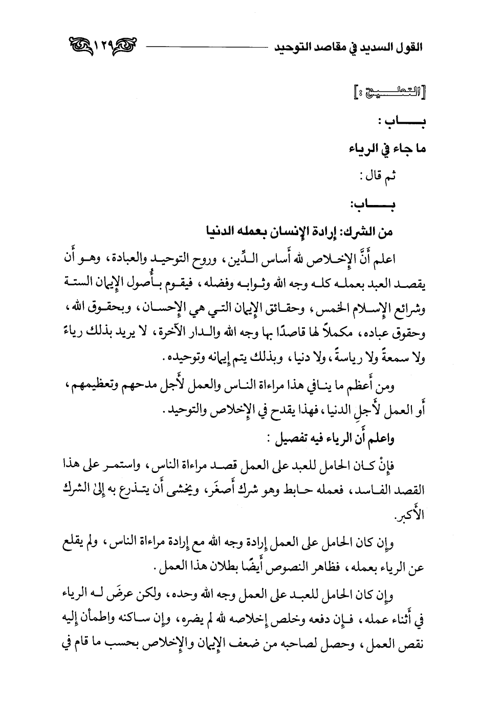 باب: من الشرك: إرادة الإنسان بعمله الدنيا