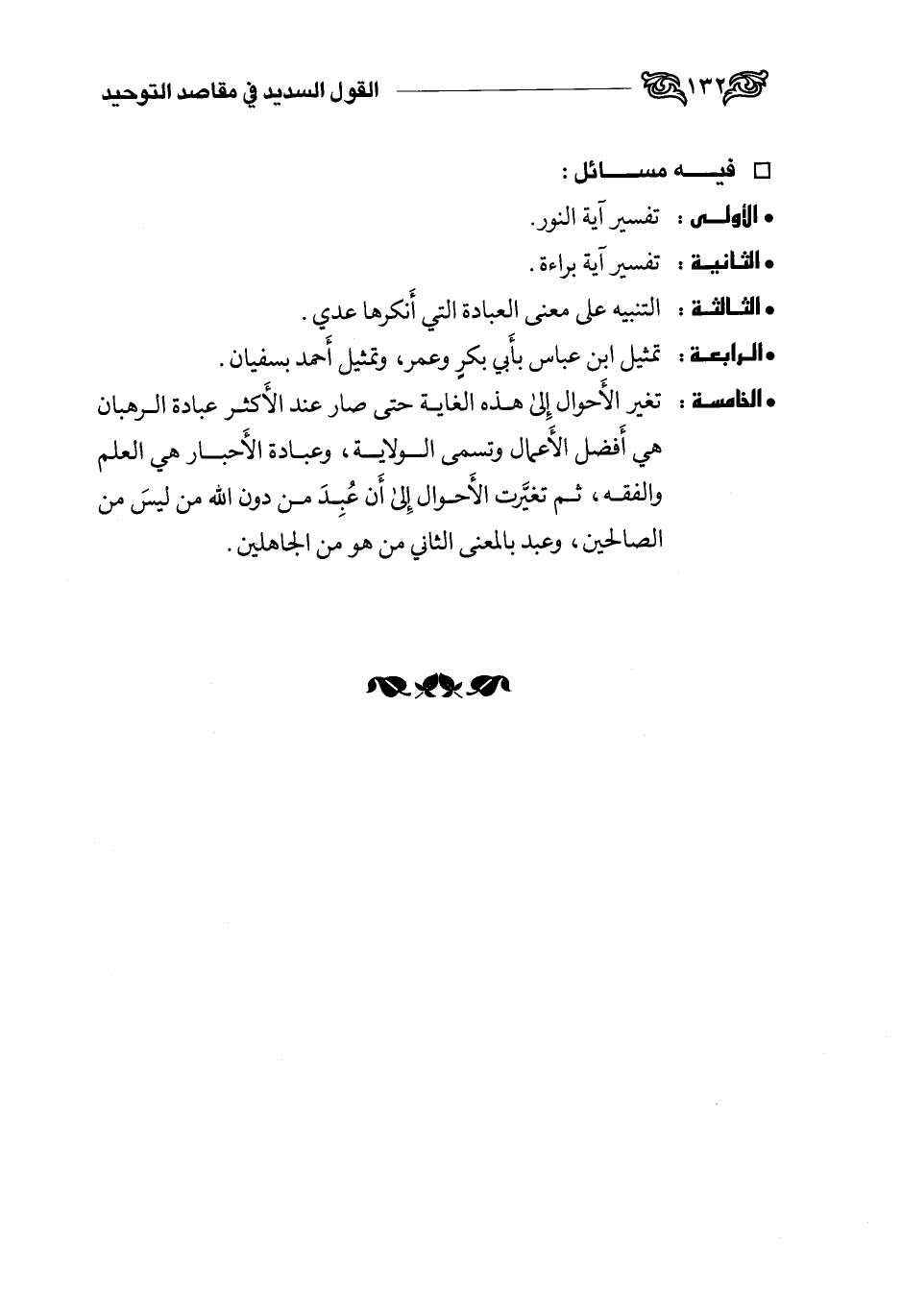 الخامسة: تغير الأحوال إلى هذه الغاية حتى صار عند الأكثر عبادة الرهبان هي أفضل الأعمال وتسمى الولاية، وعبادة الأحبار هي العلم والفقه، ثم تغيرت الأحوال إلى أن عبد من دون الله من ليس من الصالحين، وعبد بالمعنى الثاني من هو من الجاهلين.