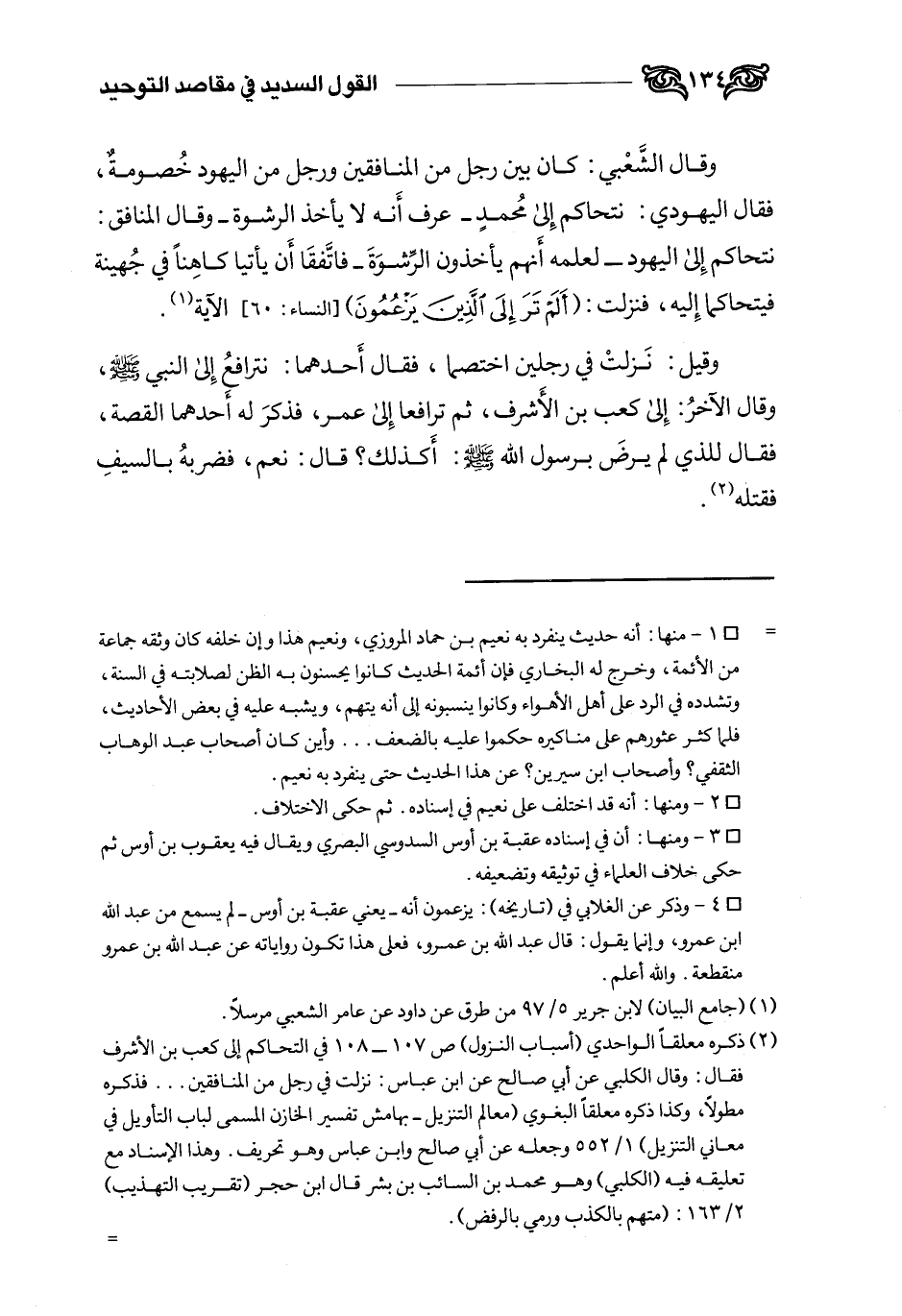 وقال الشعبي: "كان بين رجل من المنافقين ورجل من اليهود خصومة، فقال اليهودي: نتحاكم إلى محمد- عرف أنه لا يأخذ الرشوة-. وقال المنافق: نتحاكم إلى اليهود- لعلمه أنهم يأخذون الرشوة- فاتفقا أن يأتيا كاهنا في جهينة فيتحاكما إليه، فنزلت: {أَلَمْ تَرَ إِلَى الَّذِينَ يَزْعُمُونَ} " 1. وقيل: نزلت في "رجلين اختصما، فقال أحدهما: نترافع إلى النبي صلى الله عليه وسلم وقال الآخر: إلى كعب بن الأشرف، ثم ترافعا إلى عمر، فذكر له أحدهما القصة، فقال للذي لم يرض برسول الله:صلى الله عليه وسلم أكذلك؟ قال: نعم، فضربه بالسيف فقتله"2.